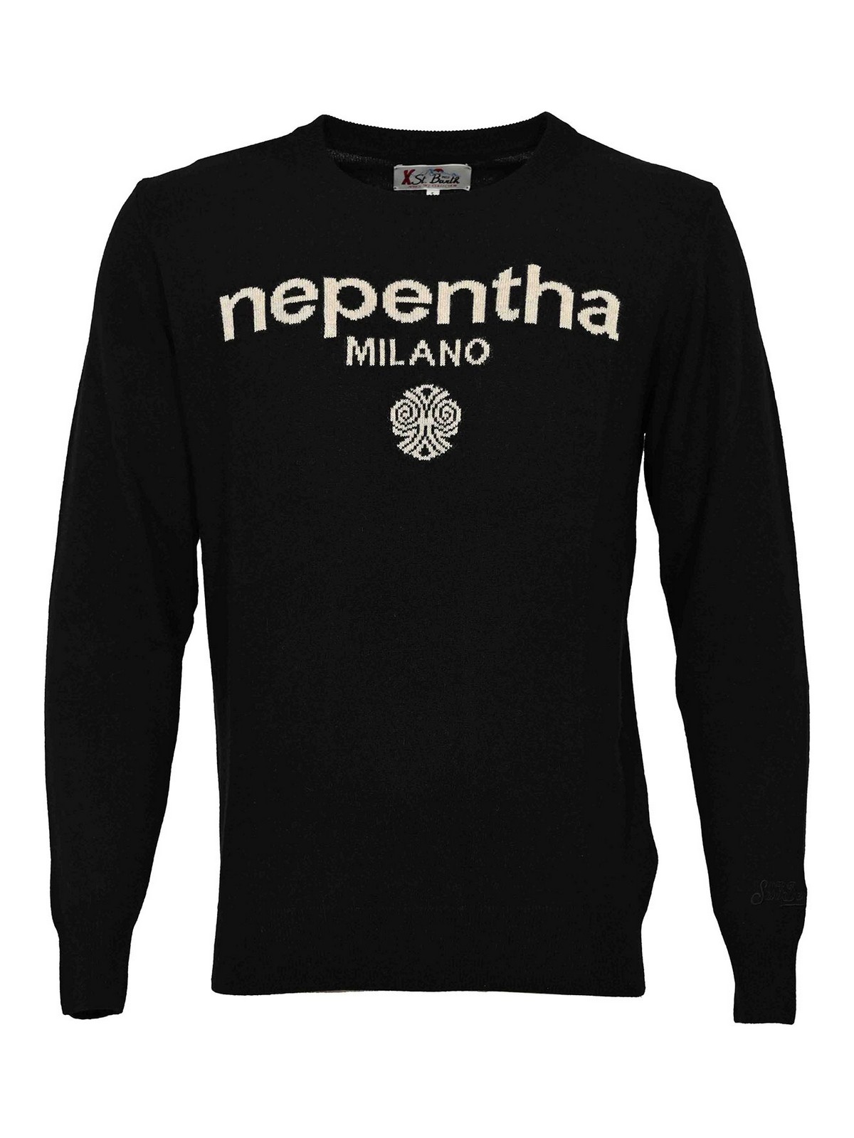 Jersey Mc2 Saint Barth de lana y cachemir, modelo Heron Light Nepentha Tejido: lana y cachemir Estampado: color liso con letras y logotipo bordados en la parte delantera Mangas: largas, con puños acanalados Cuello: cuello redondo cierre: ninguno, bolsillos tipo jersey: ninguno detalles: letras nepentha milano y logotipo gráfico bordados en el pecho, logotipo mc2 saint barth tono sobre tono en la manga, bordes acanalados en el cuello, los puños y el dobladillo forrados: sin ajuste: normal