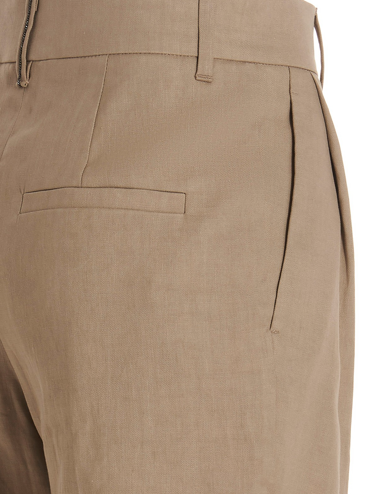 Pantalones en mezcla de lino con cierre de cremallera, gancho y botón.