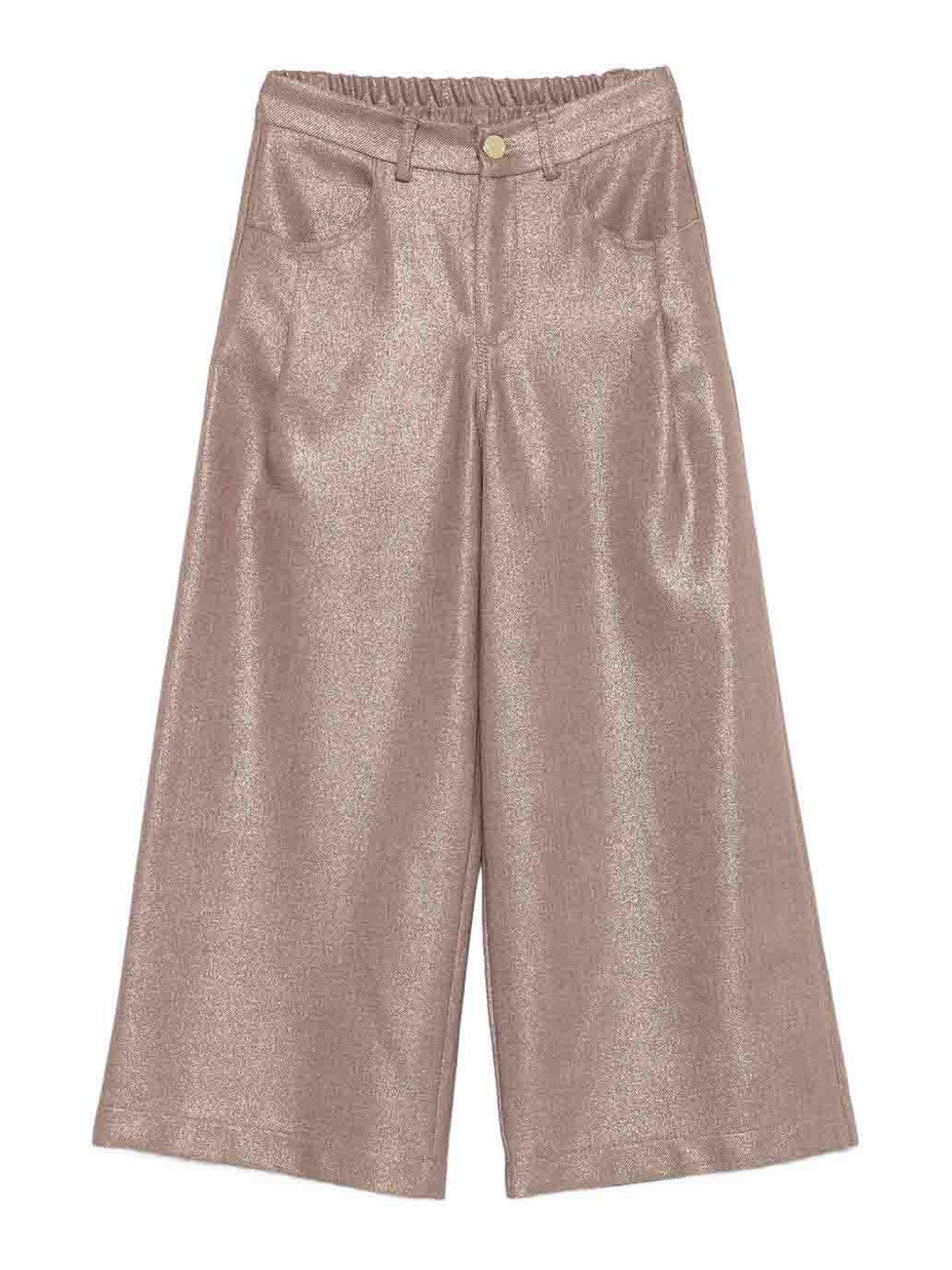Pantalón metalizado con pernera ancha y elástico en la espalda