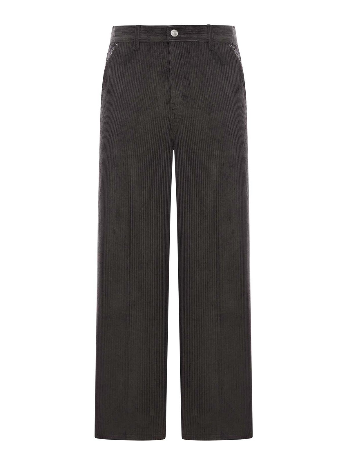 Pana, botón, trabillas, dos bolsillos laterales en la parte posterior, dos bolsillos de parche en la parte posterior, pernera ancha, dobladillo recto, color antracita