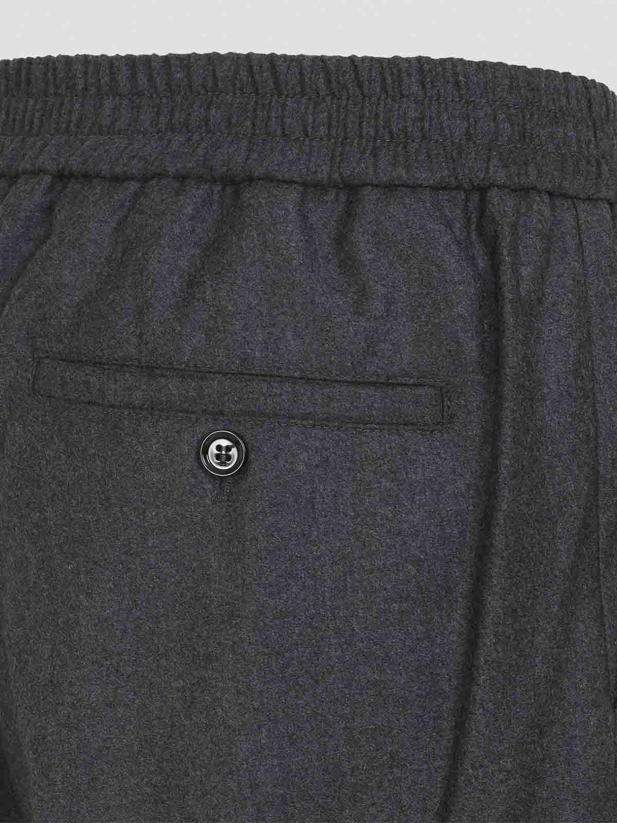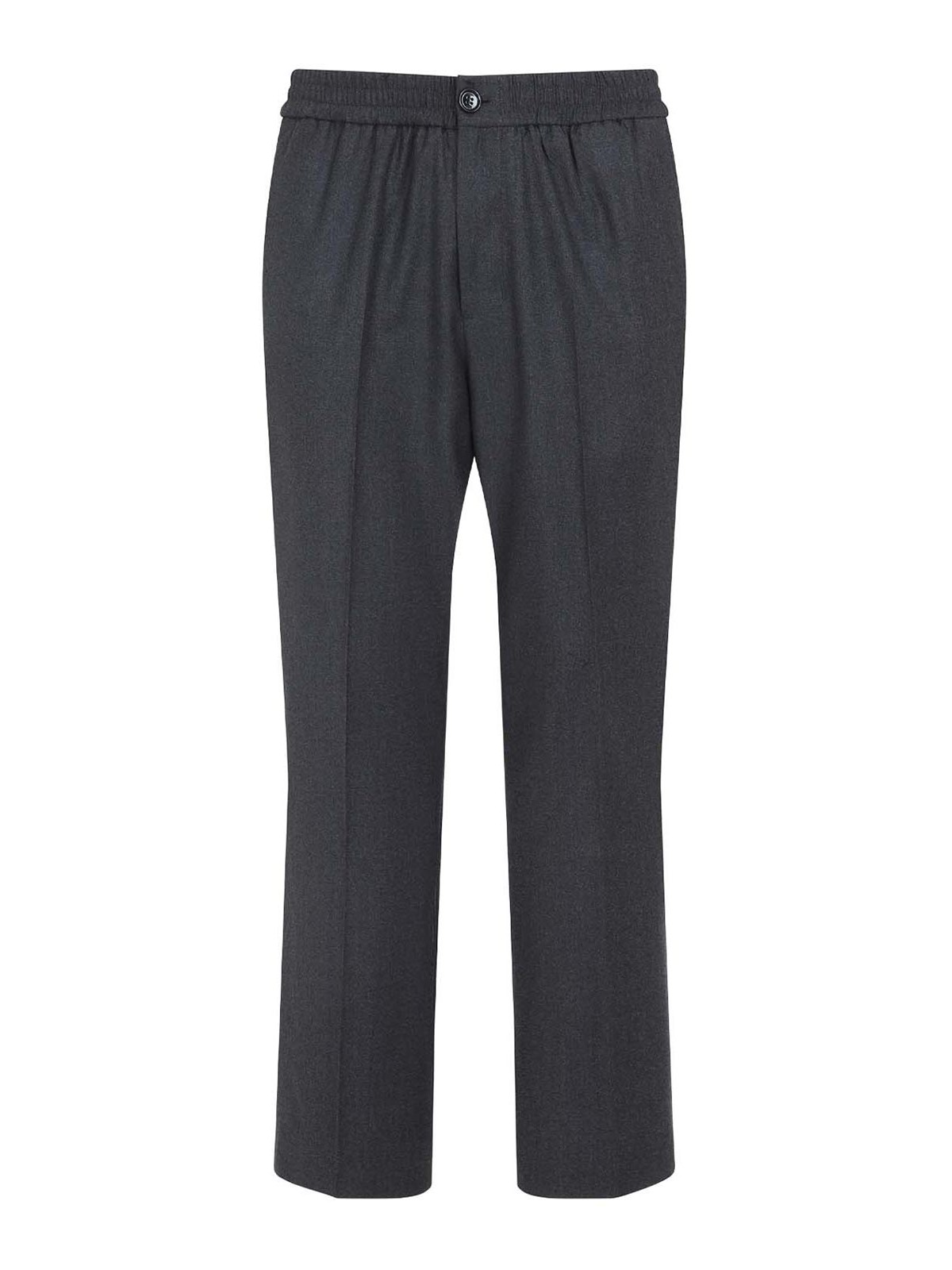 Cintura elástica Ami, pantalones grises, cintura elástica gris, bolsillos laterales ocultos, dos bolsillos ribeteados en la espalda, pierna recta