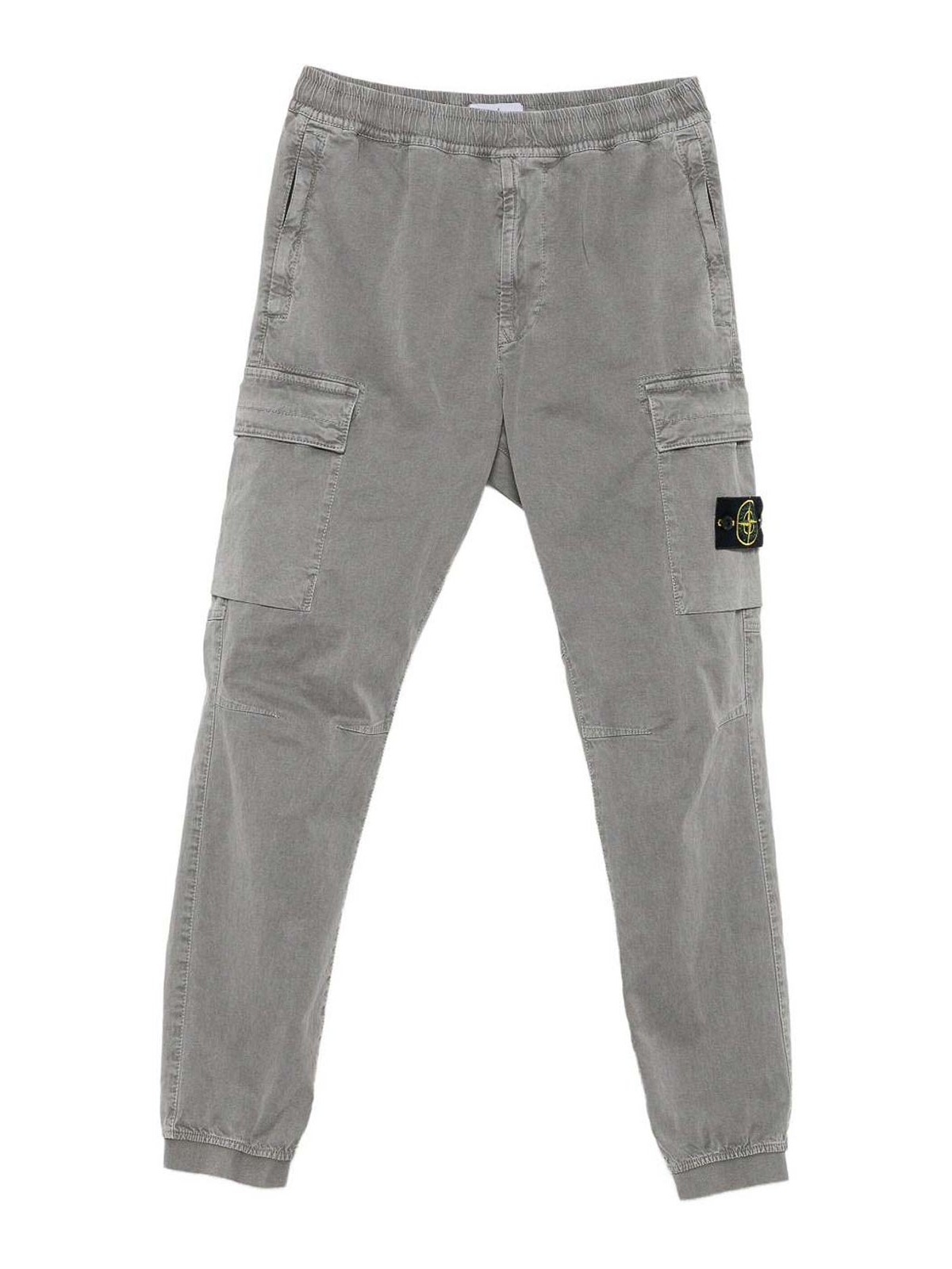 Pantalones cargo elásticos de color gris Stone Island con parche con logotipo