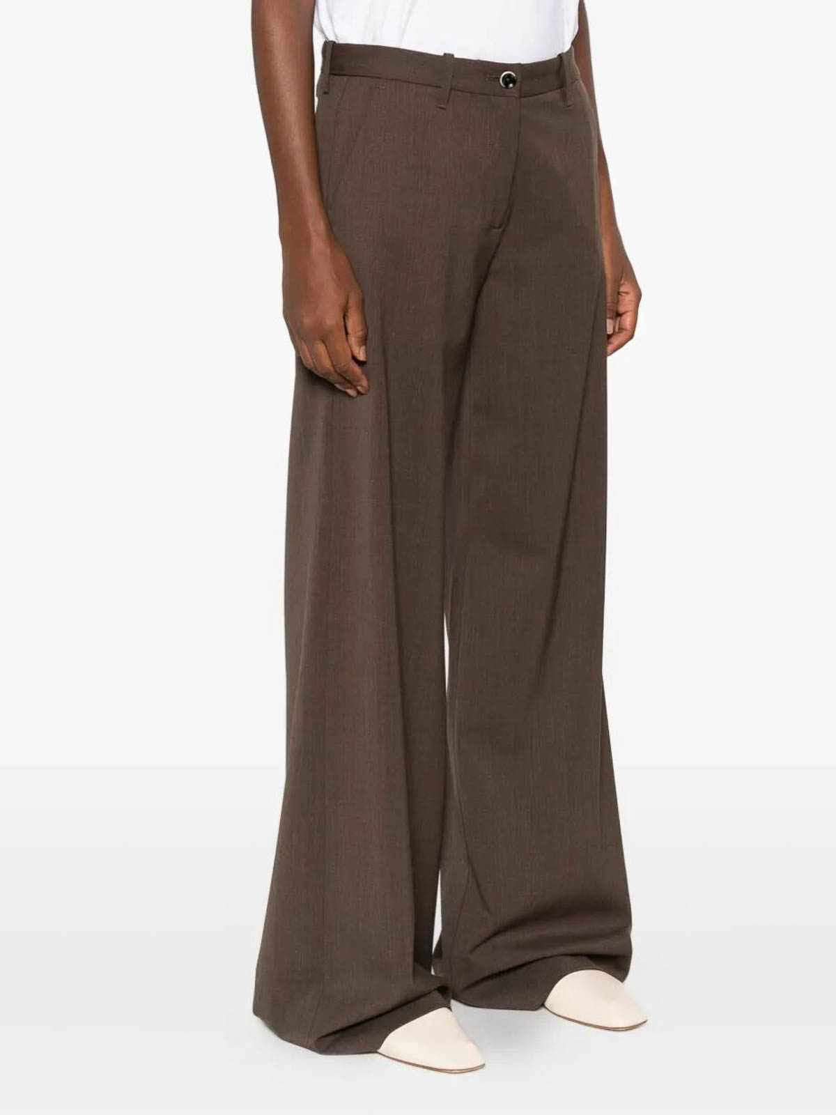 Pantalones palazzo Nine in the morning, una prenda que combina elegancia y comodidad con un toque de feminidad moderna. Confeccionados en un tejido suave y fluido, presentan un corte ancho y un corte holgado, ideales para realzar la figura de forma natural. El cálido y sofisticado color marrón oscuro los hace versátiles y perfectos para combinar tanto con looks casuales como más formales. Imprescindible para quienes buscan estilo sin sacrificar la comodidad.