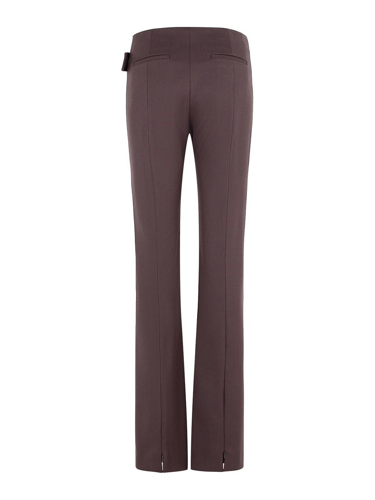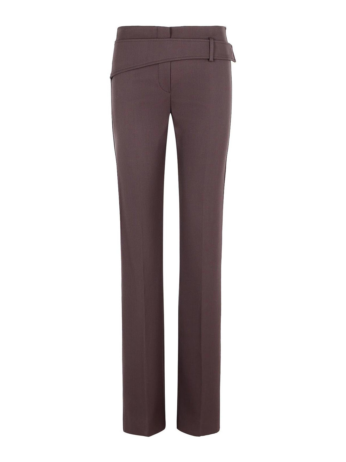 Pantalones en mezcla de lana, corte ajustado con cremallera y cinturón asimétrico, pliegues estirados en la parte trasera y cremallera en la parte posterior del tobillo, ajuste ajustado