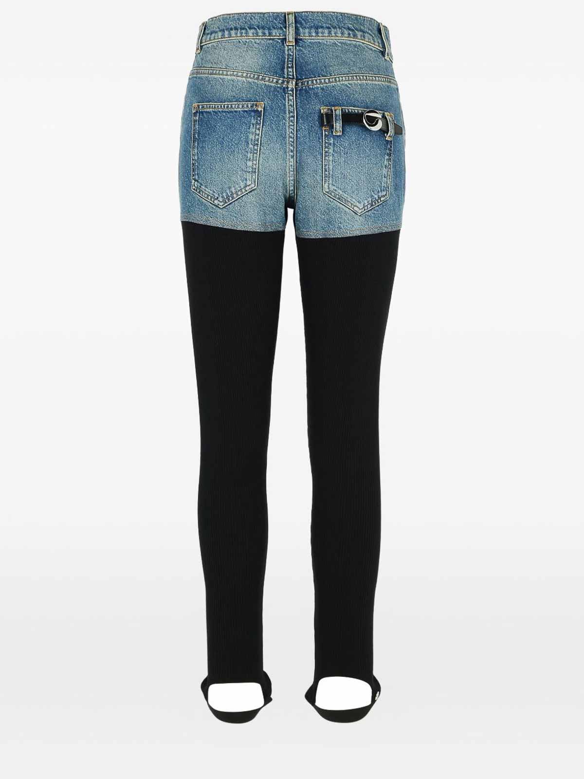 Cuenta con leggings de mezclilla negros, diseño acanalado con tapeta con botones, cinco bolsillos y dobladillo elástico.