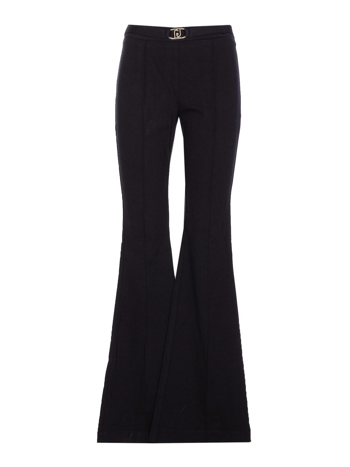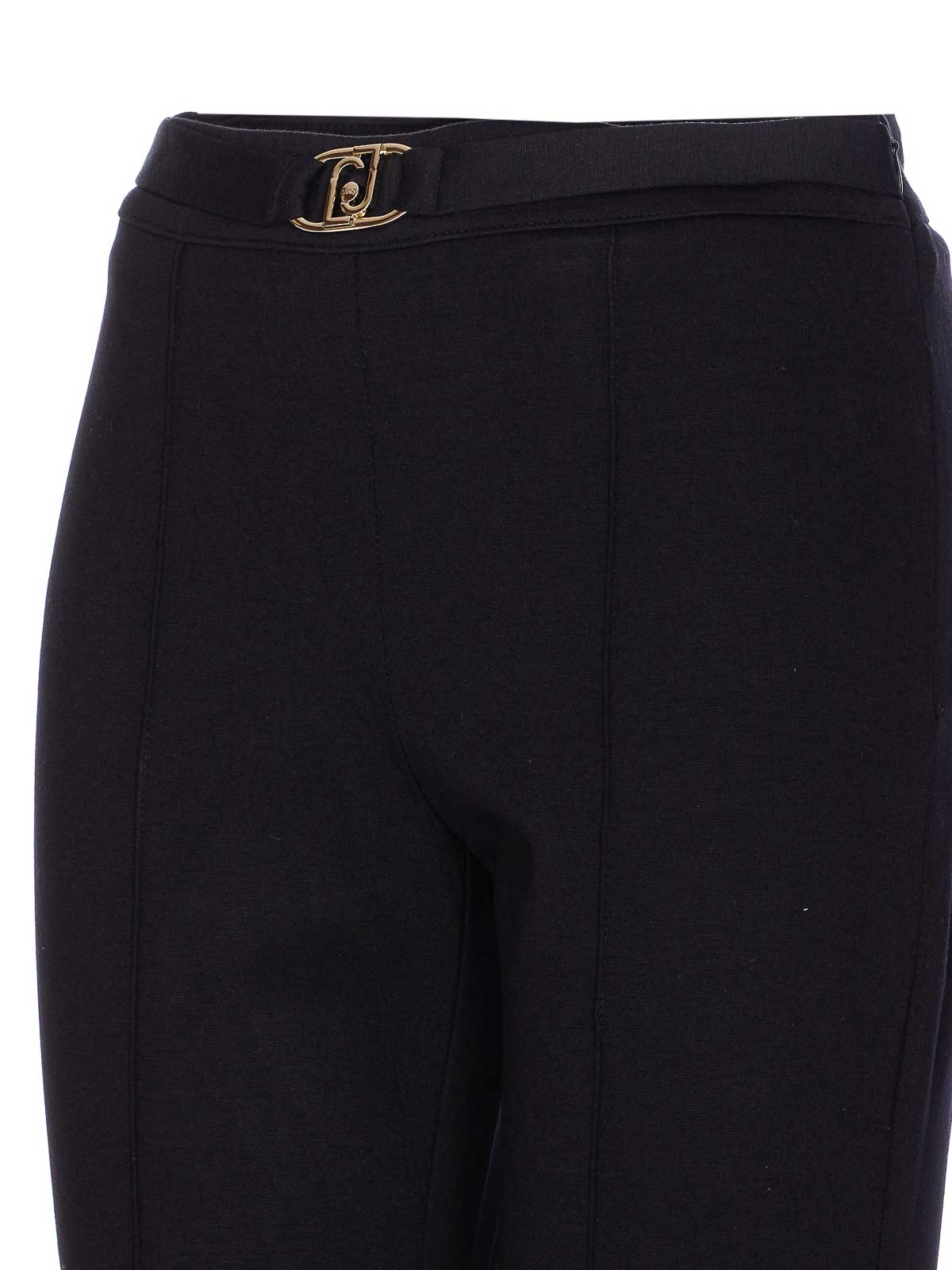 Pantalones negros Liu jo, cierre con cremallera lateral, cinturón en la cintura con logotipo de placa, ajuste elástico