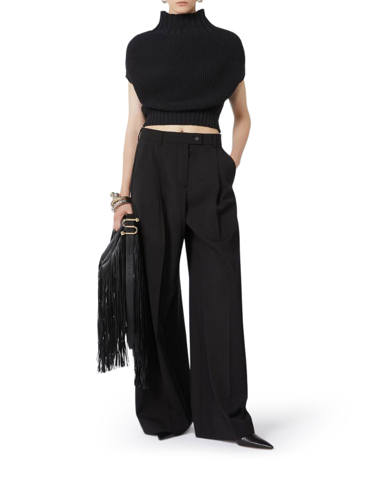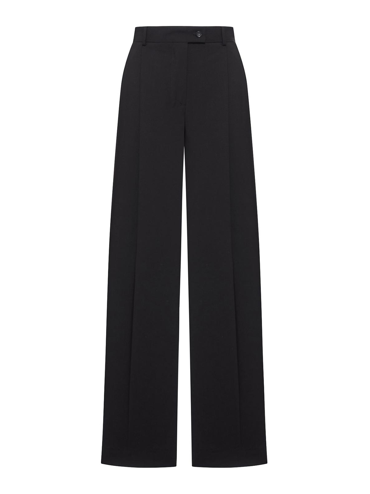 Pantalones de gran tamaño en elasticidad natural pura, corte holgado con pernera ancha y cintura baja, botón asimétrico, pliegues planchados en la cintura y pliegues planchados en la pierna, bolsillos franceses laterales y bolsillos traseros ribeteados, - la modelo lleva talla (it) y es alta ella