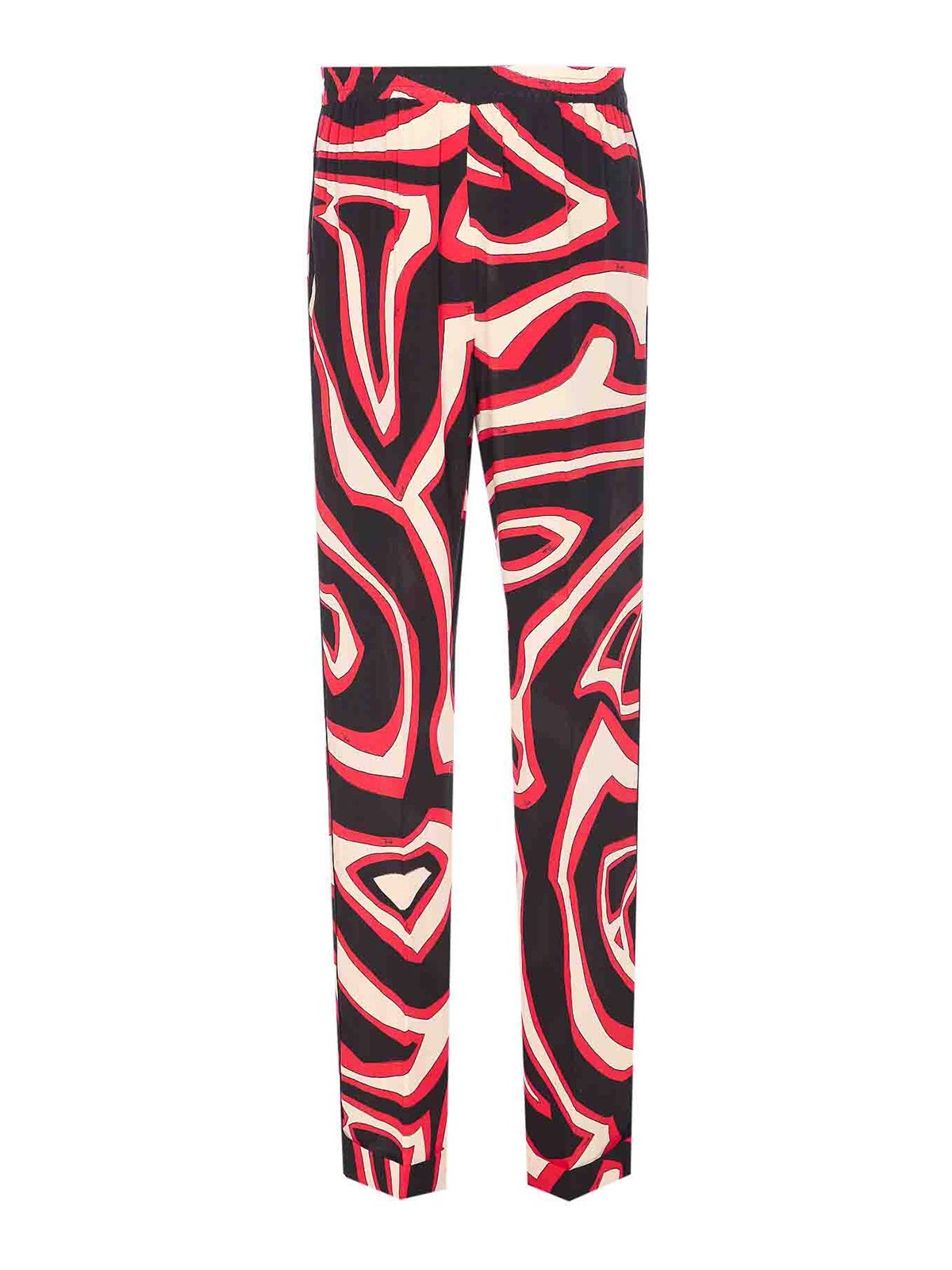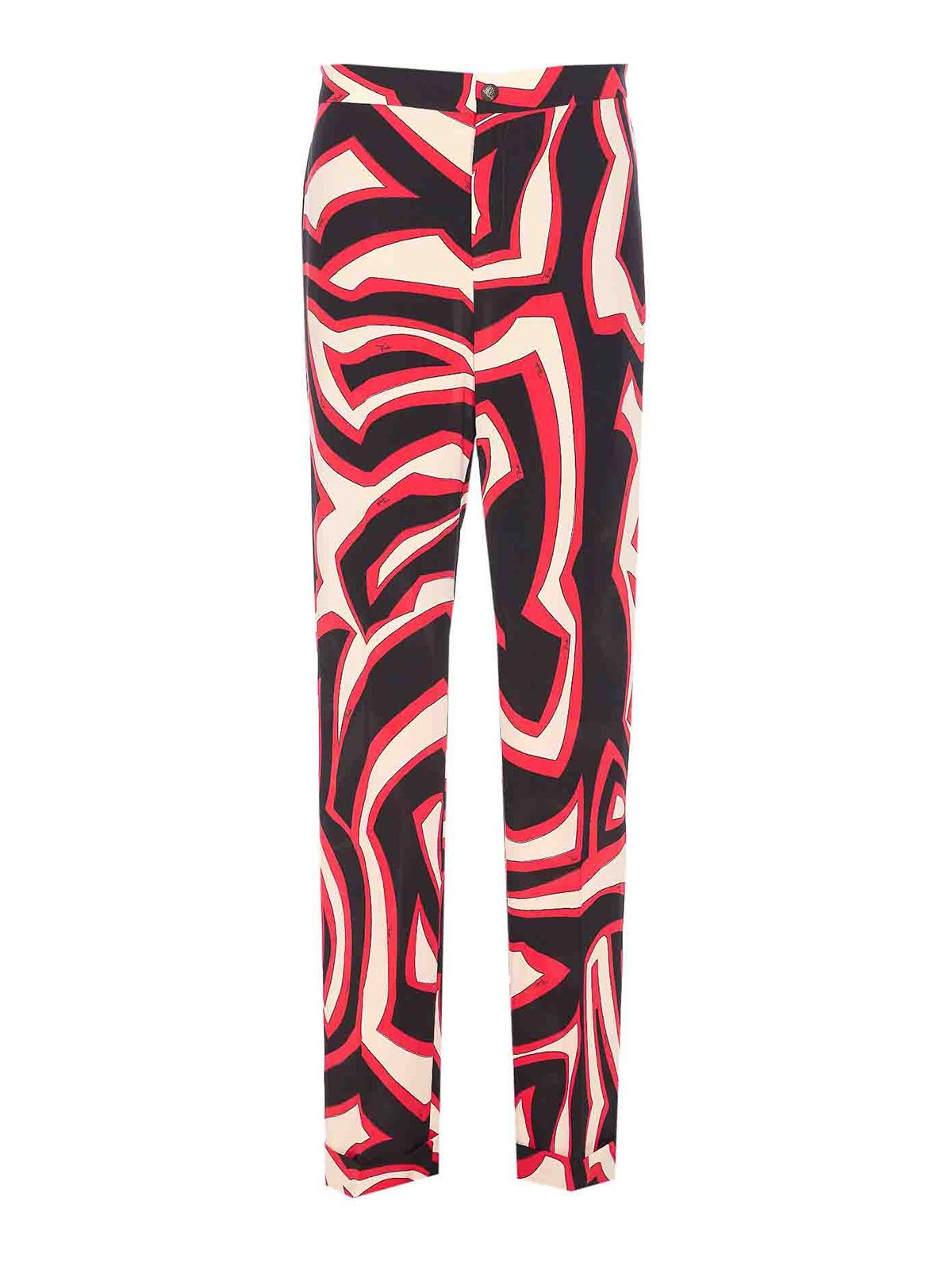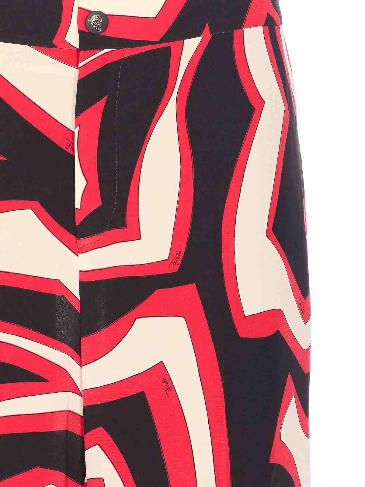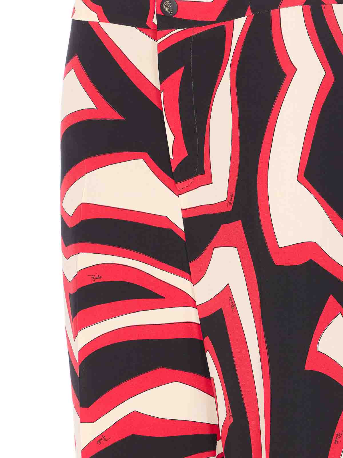 Pantalones estampados multicolor de Emilio Pucci, cierre con cremallera y botón, bolsillos laterales, estampado