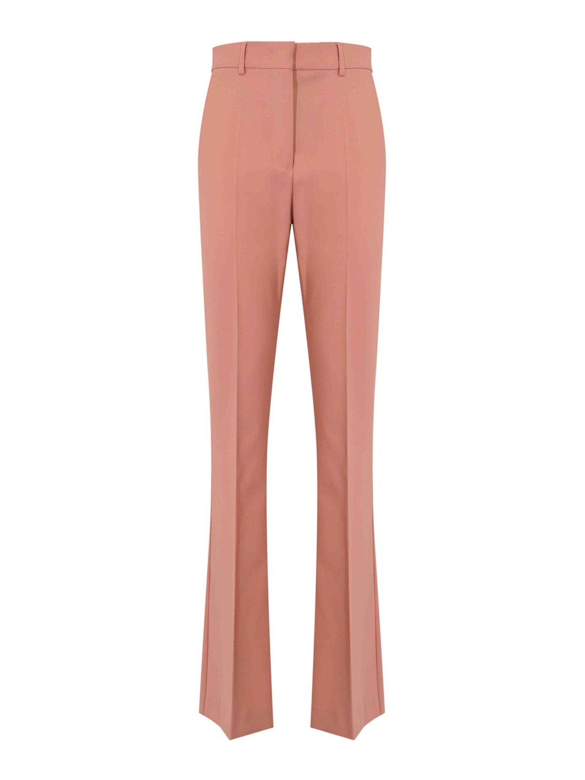 Pantalones acampanados de sarga elástica modelo Sportmax febe, sarga con estampado, cintura lisa, cintura con trabillas, bolsillos cubiertos con cremallera y gancho, dos bolsillos ribeteados en la parte trasera, largo, dobladillo acampanado ajustado a lo largo del muslo con una ligera abertura en la parte inferior, pliegue planchado en la parte inferior y forrados en la espalda, sin ajuste