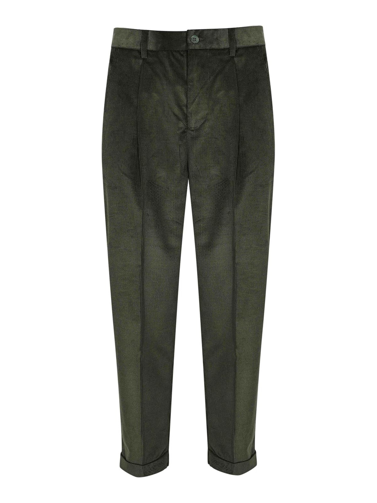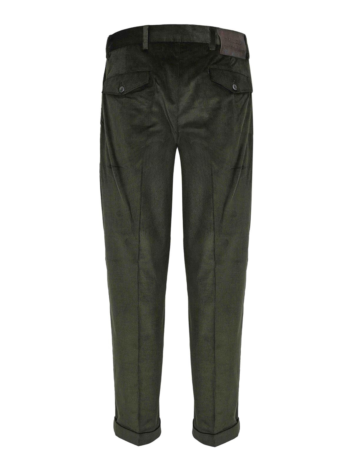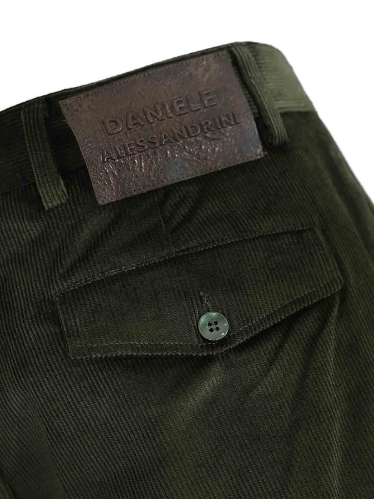 pantalones de pana de algodón y modal daniele alessandrini tejido: algodón y pana modal Estampado: verde militar liso Talle: talle medio con trabillas Cierre: botón frontal y bolsillos cubiertos con cremallera: bolsillos laterales inclinados y bolsillos traseros con solapa y botones Longitud: largo con dobladillos enrollados Detalles: dardos en la parte delantera, parche con el logotipo de piel en la parte posterior, acabado aterciopelado con efecto brillante, confección a medida con un forro moderno: sin ajuste: ajuste regular