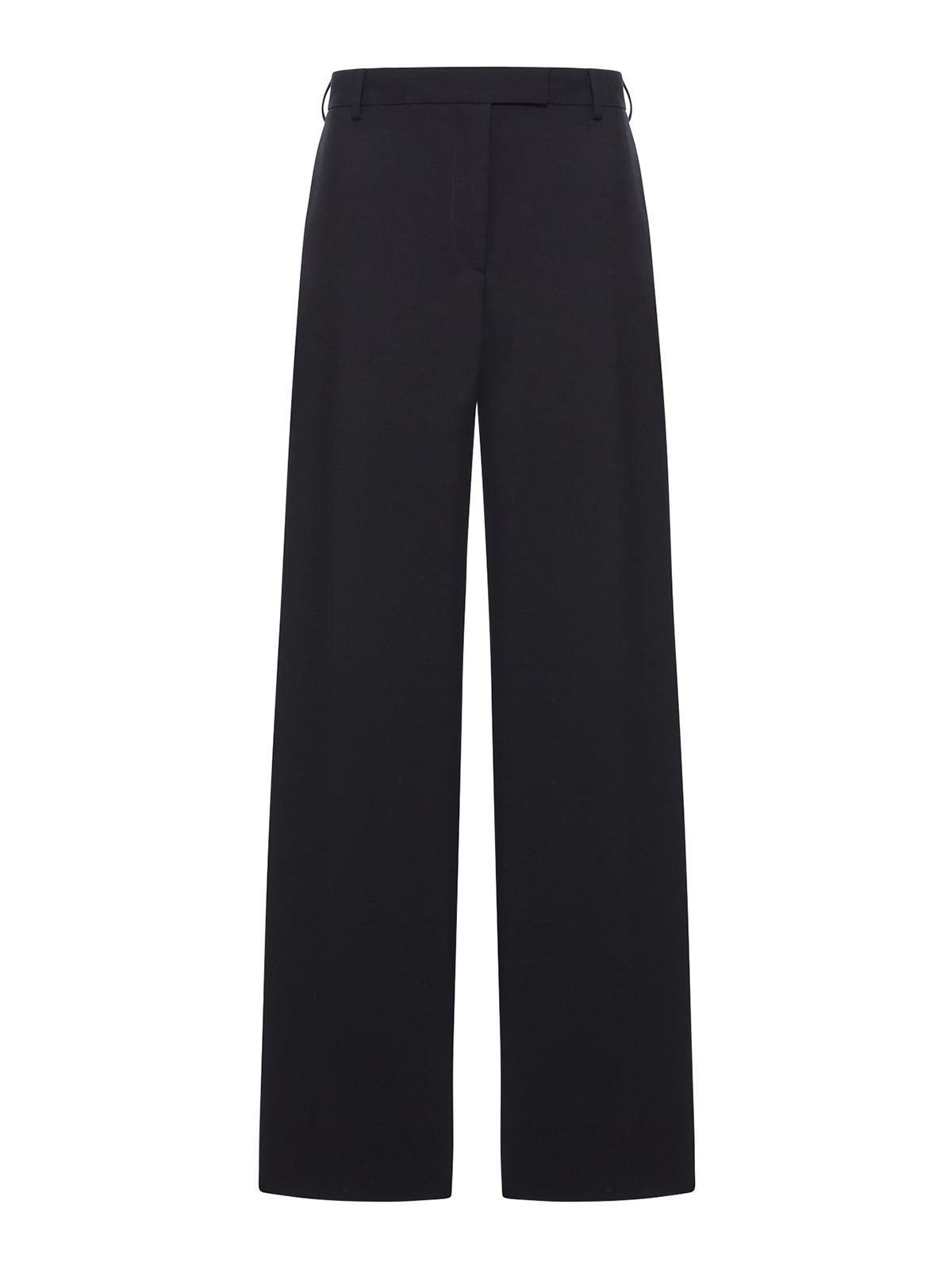 Cintura alta, trabillas, cremallera y gancho ocultos, dos bolsillos traseros ribeteados, pernera recta, dobladillo recto y mezcla, color negro