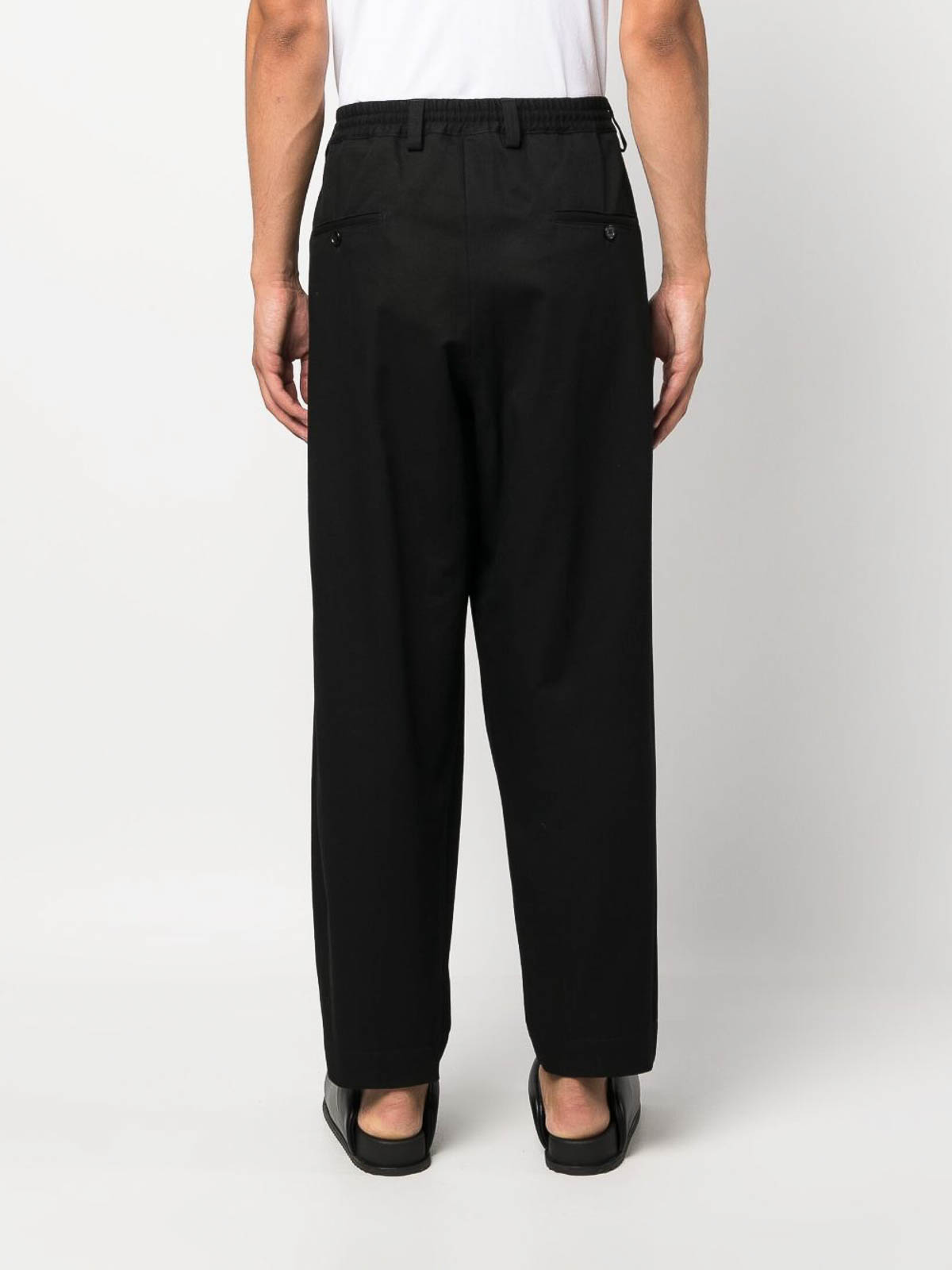 Pantalones cónicos de talle medio de marni con detalles de pliegues negros, pierna cónica de talle medio, cintura elástica de talle medio, bragueta y botones ocultos, trabillas para el cinturón, dos bolsillos con aberturas laterales y dos bolsillos traseros con cierre con botones