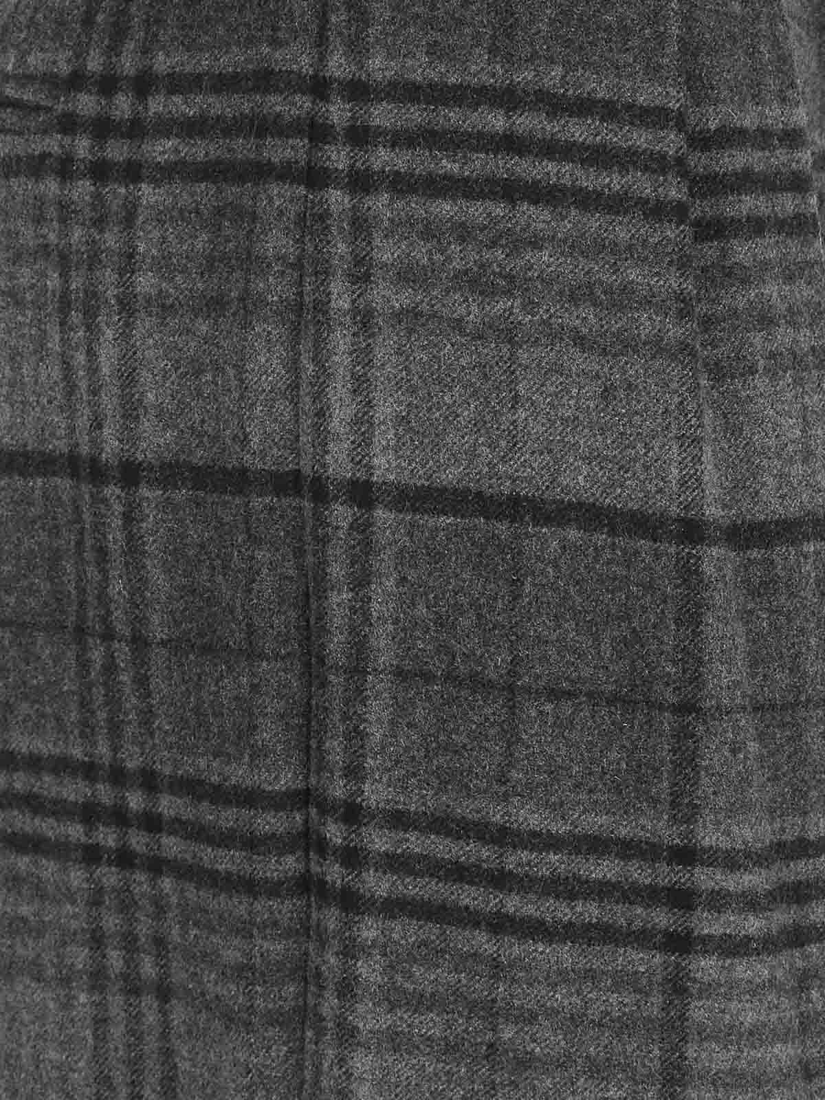 `estampado de cuadros grises y negros en lana con cierre de botones y pliegues `