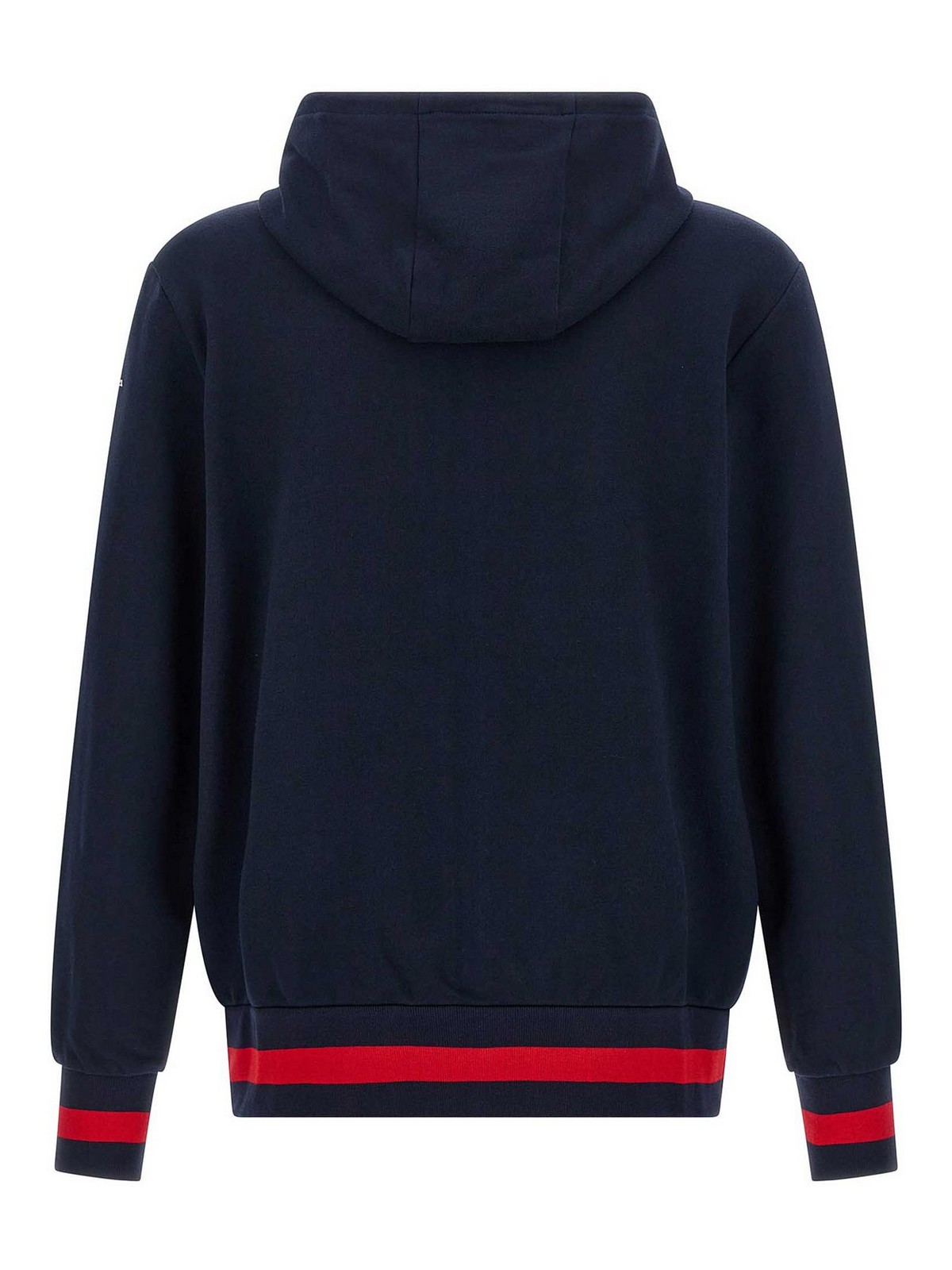 Chándal de gasa y algodón con bandas en contraste, compuesto por sudadera con capucha, cierre frontal con cremallera, bolsillos, manga larga con puños y pantalones deportivos con elástico y cordón en la cintura, pernera ancha, solapa trampantojo, bolsillos.