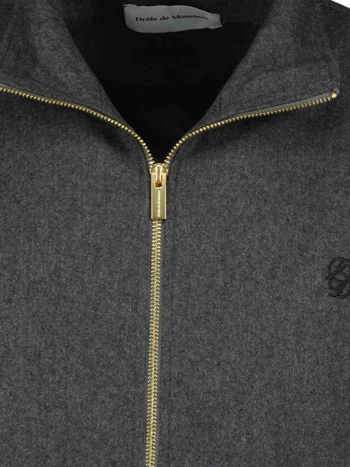 Bolsillos con cremallera con solapas y broches, cuello alto, dobladillo y puños elásticos, mangas largas, la talla que se muestra en la foto es M, color gris