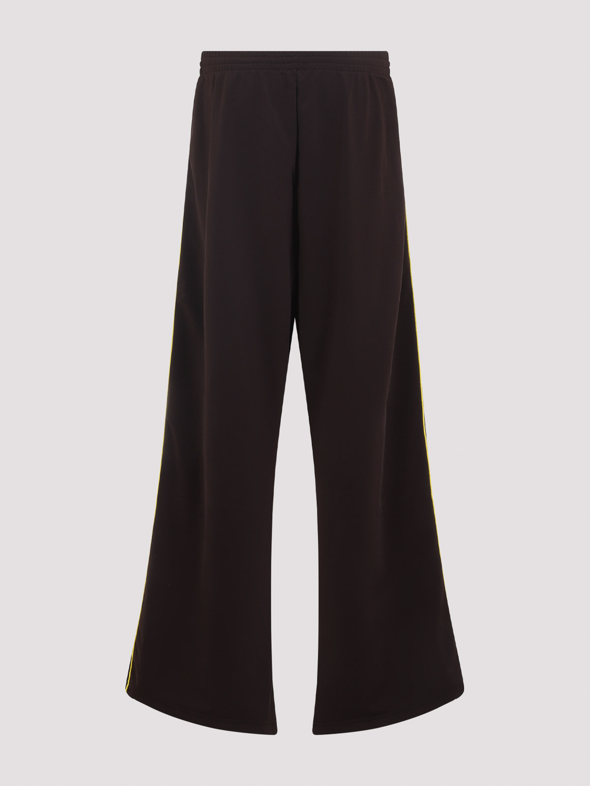 Pantalón deportivo Martine de pierna ancha de color marrón rosa, cintura elástica pura, bolsillos laterales laterales, letras blancas en contraste, logotipo, pierna ancha, banda lateral negra y roja