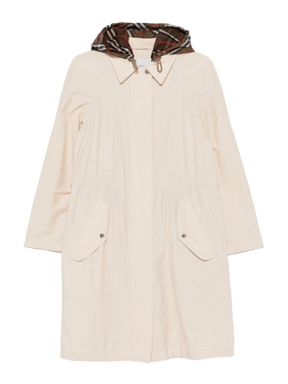 Capucha con estampado de cuadros beige, bolsillos con solapa en la parte delantera, manga larga, cintura con cordón