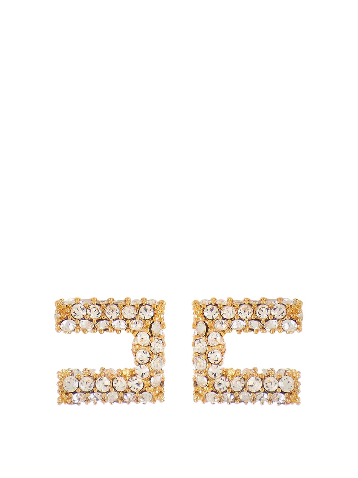 Pendientes dorados con el logo de Elisabetta franchi, diamantes en toda la prenda