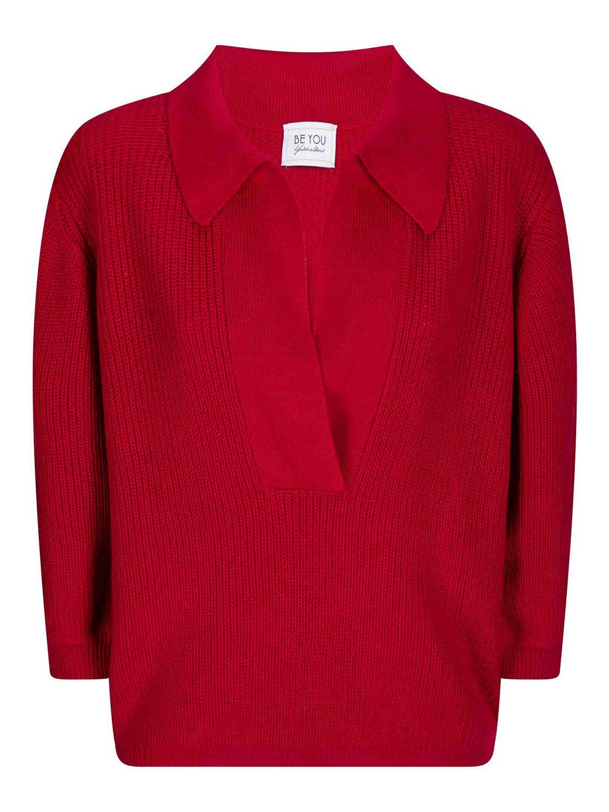 Polo acanalado con escote ancho sin botones, mangas hasta los codos, corte holgado.