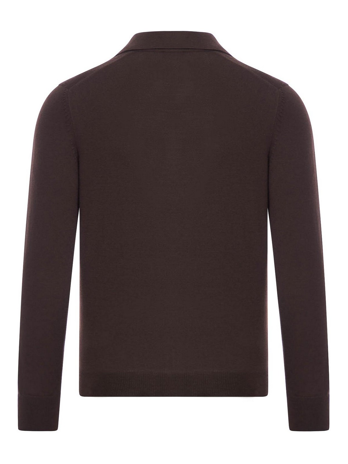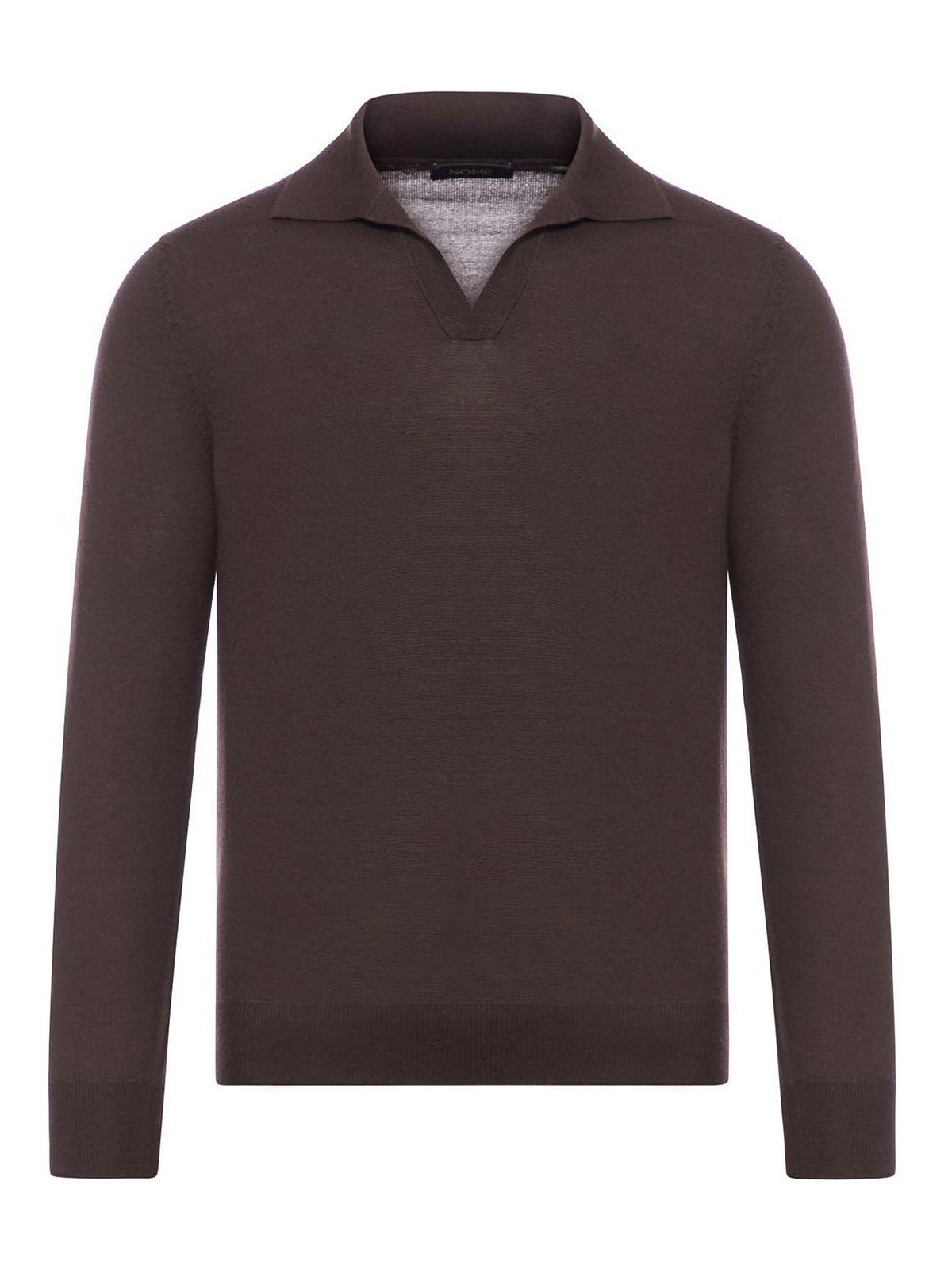 Cuello tipo polo- Abertura de cuello sin botones- Mangas largas- Corte clásico- Ribetes acanalados- color marrón