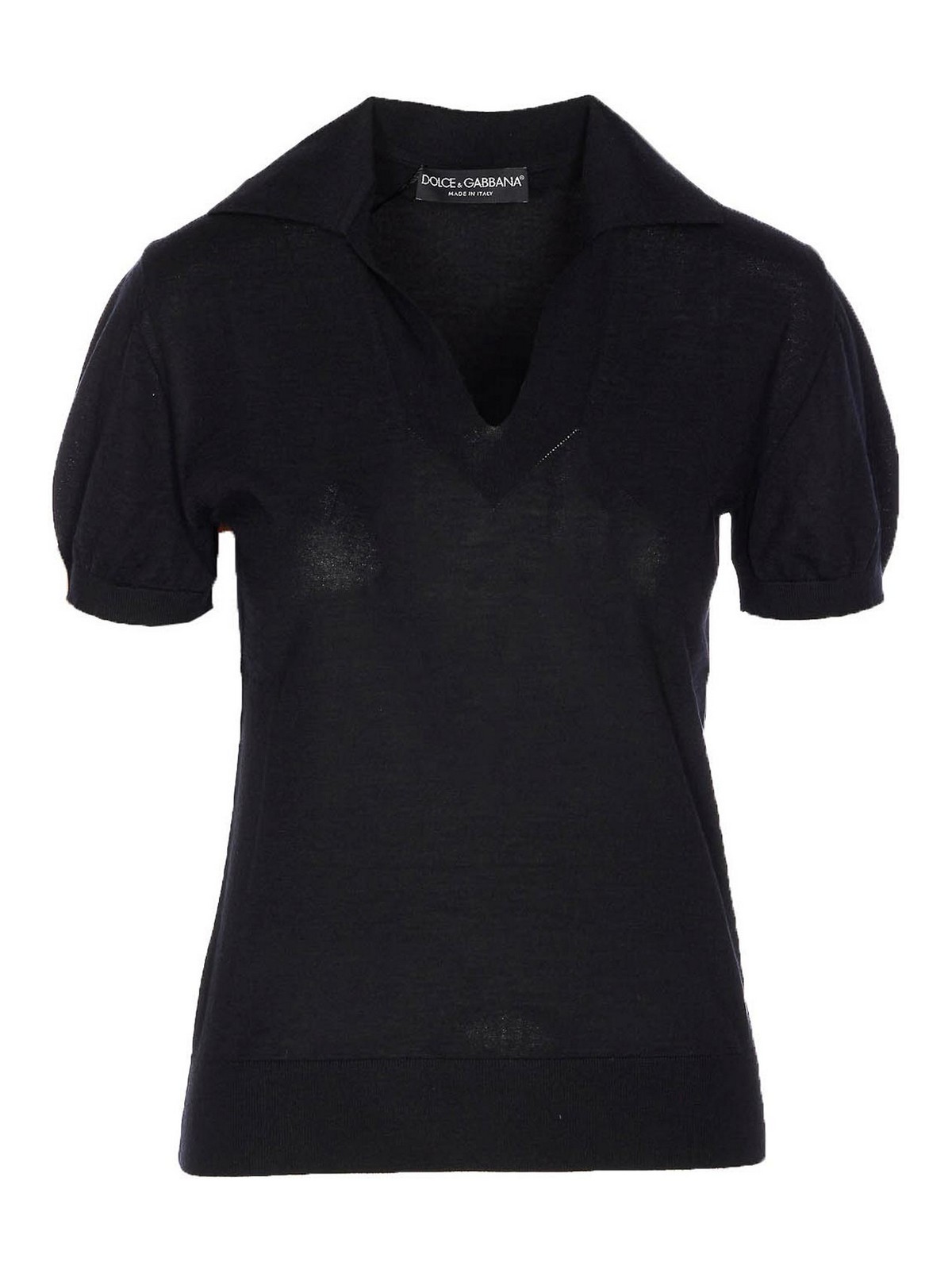 Polo negro Dolce&gabbana, cuello regular y mangas cortas, logotipo bordado en la parte inferior Nombre del color del diseñador: negro