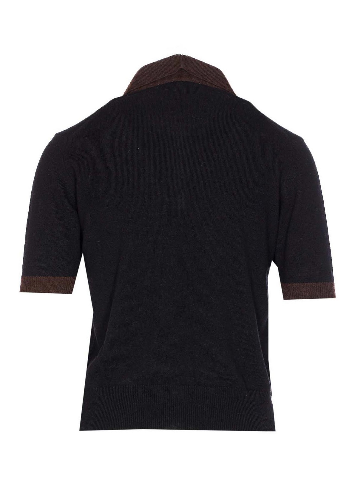 Polo Mar de margaritas negro con cuello regular y botones, manga corta Nombre