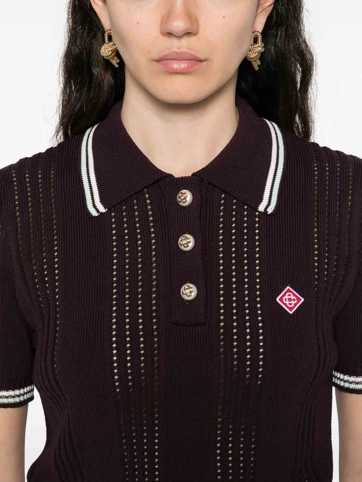 Logotipo de manga corta con botones y tapeta a rayas de color rojo oscuro