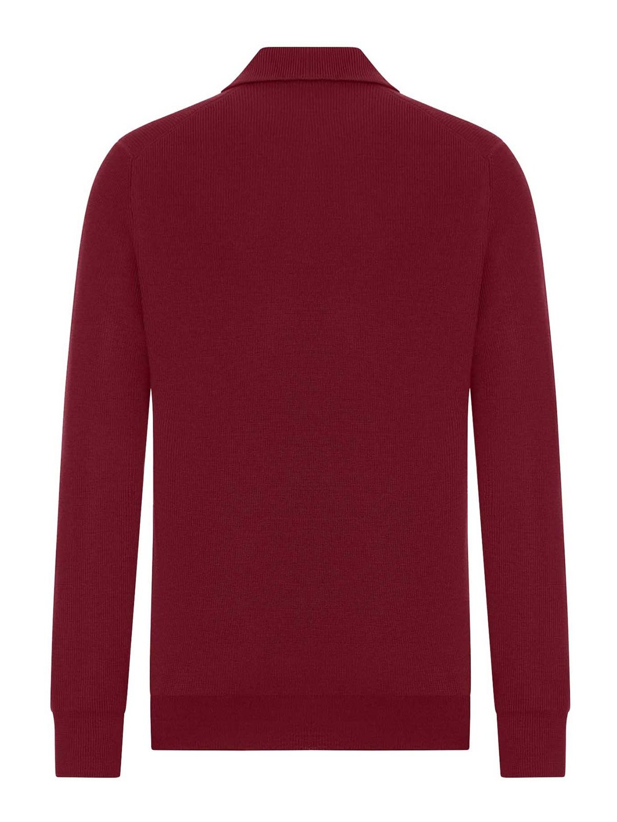 Cuello clásico, cuello en V, manga larga, puños y dobladillo acanalados, -, color burdeos