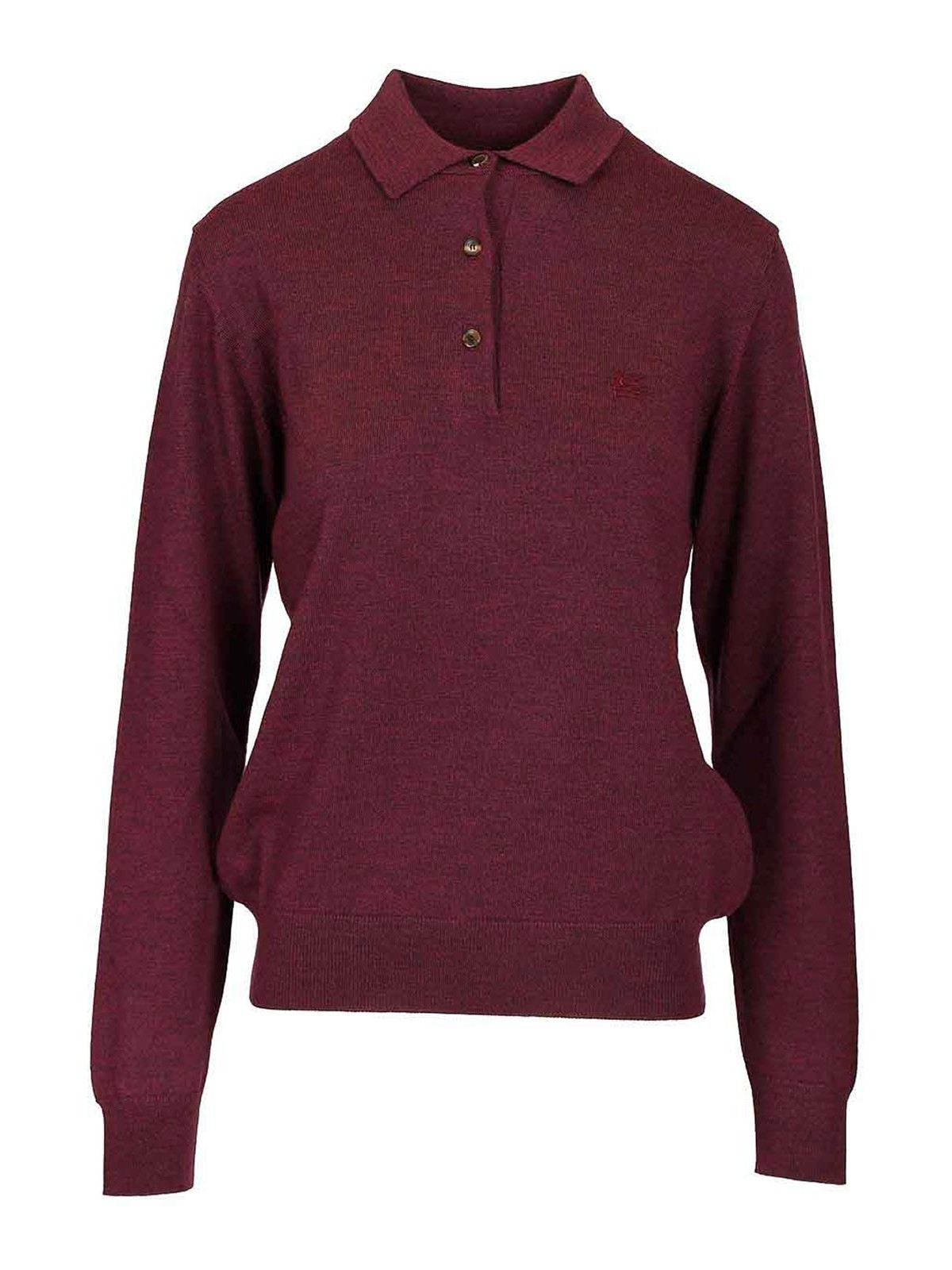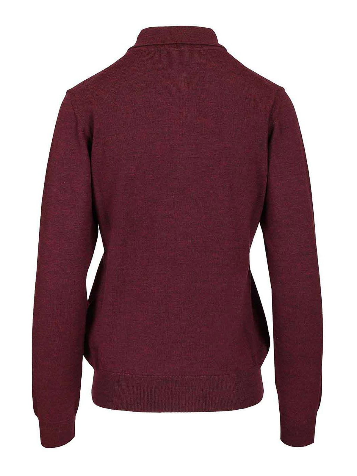 Polo de lana retro, manga larga, cuello abierto, dobladillo y puños acanalados.