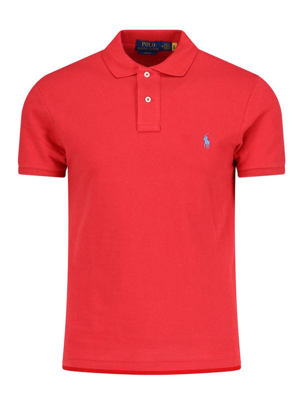 Polo Polo Ralph Lauren con logotipo, en algodón rojo, cuello clásico, mangas cortas, cierre con botones, frente bordado con el logotipo azul, dobladillo recto.