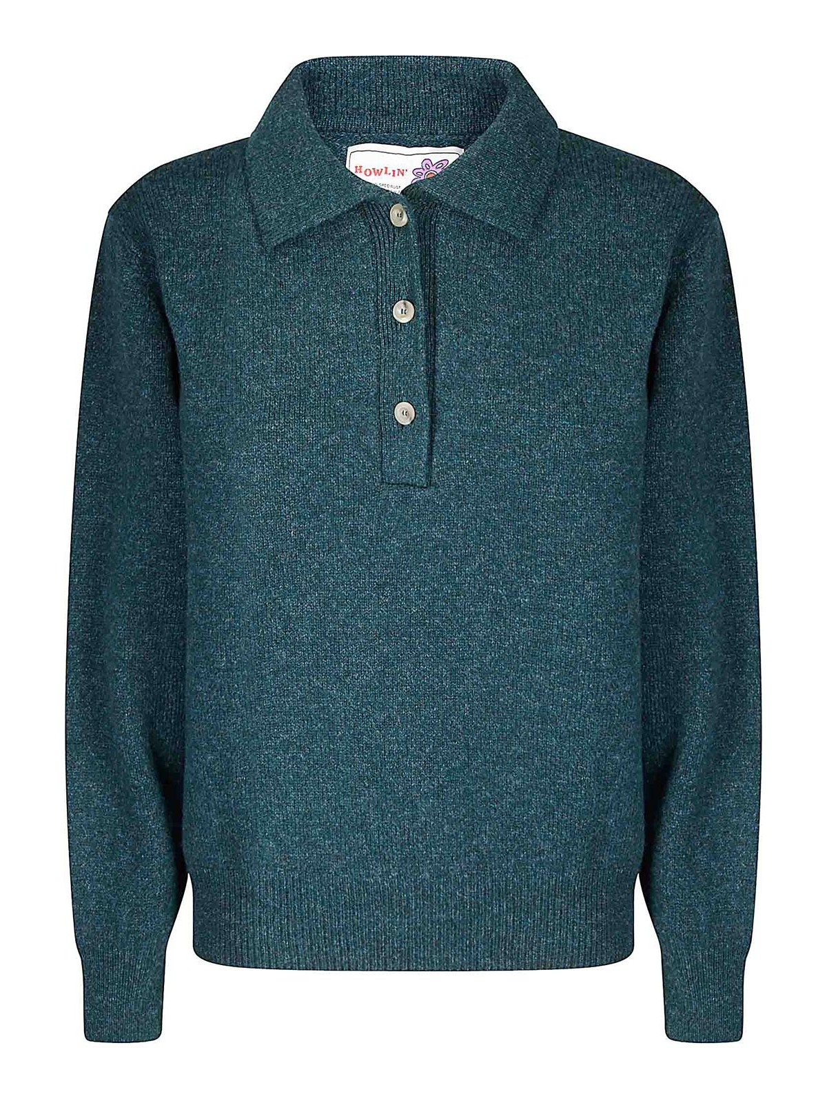 Jersey tipo polo de lana fina y cálida, botones frontales en contraste, botones claros, corte regular.