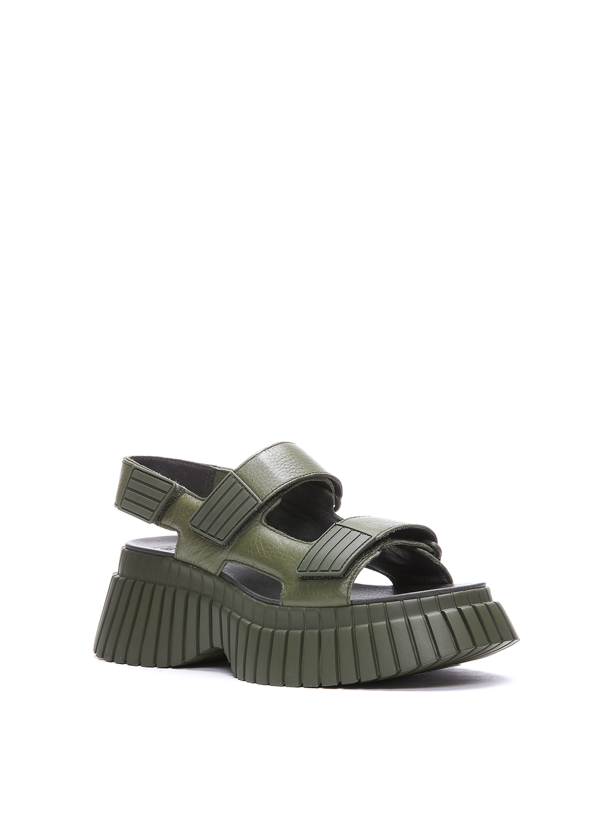 Zapatillas Camper bcn en color verde, parte superior de piel, cierre de velcro, puntera abierta