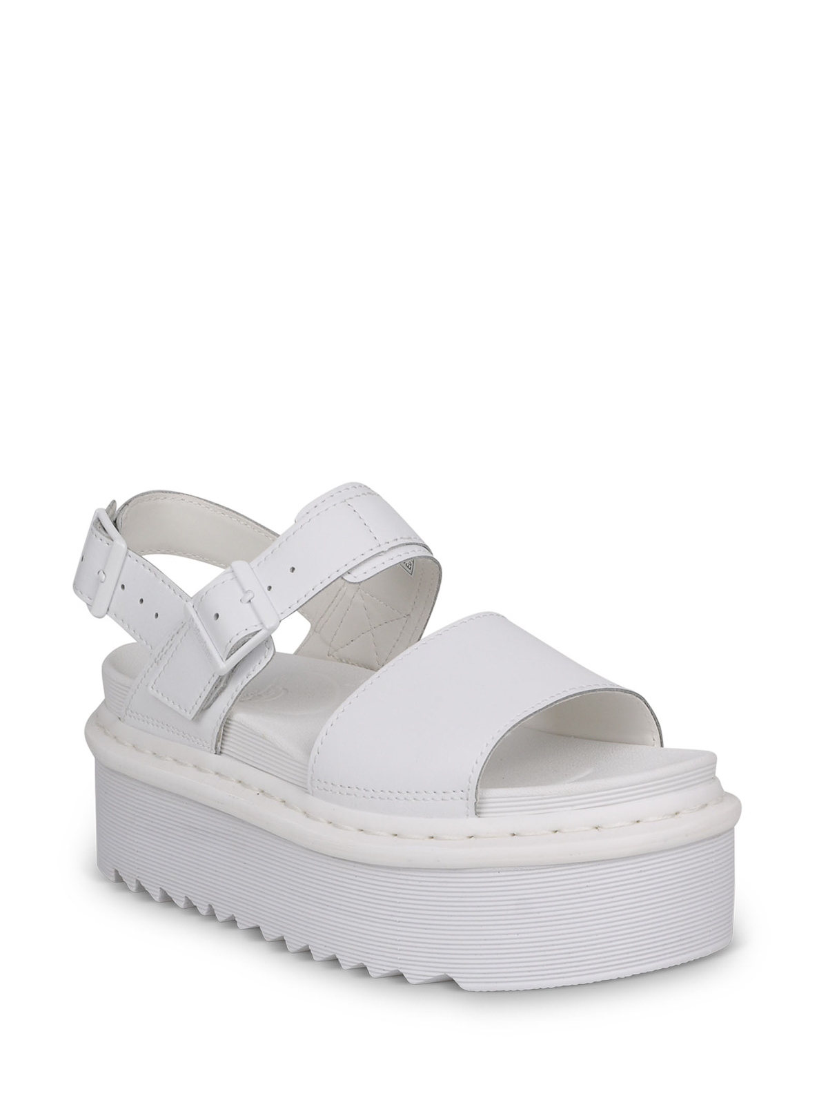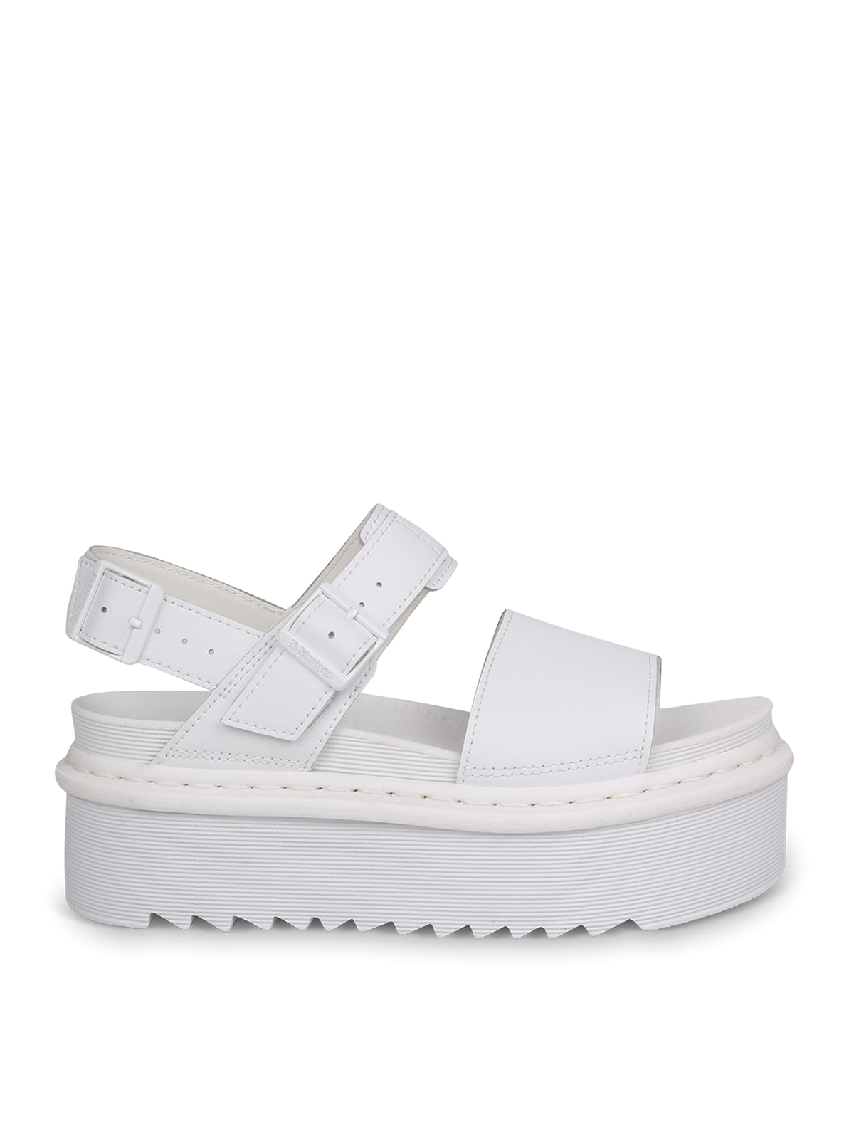 Sandalias con correa trasera de Dr. Martenstrap con hebilla, punta abierta, plantilla con logotipo.plateau.