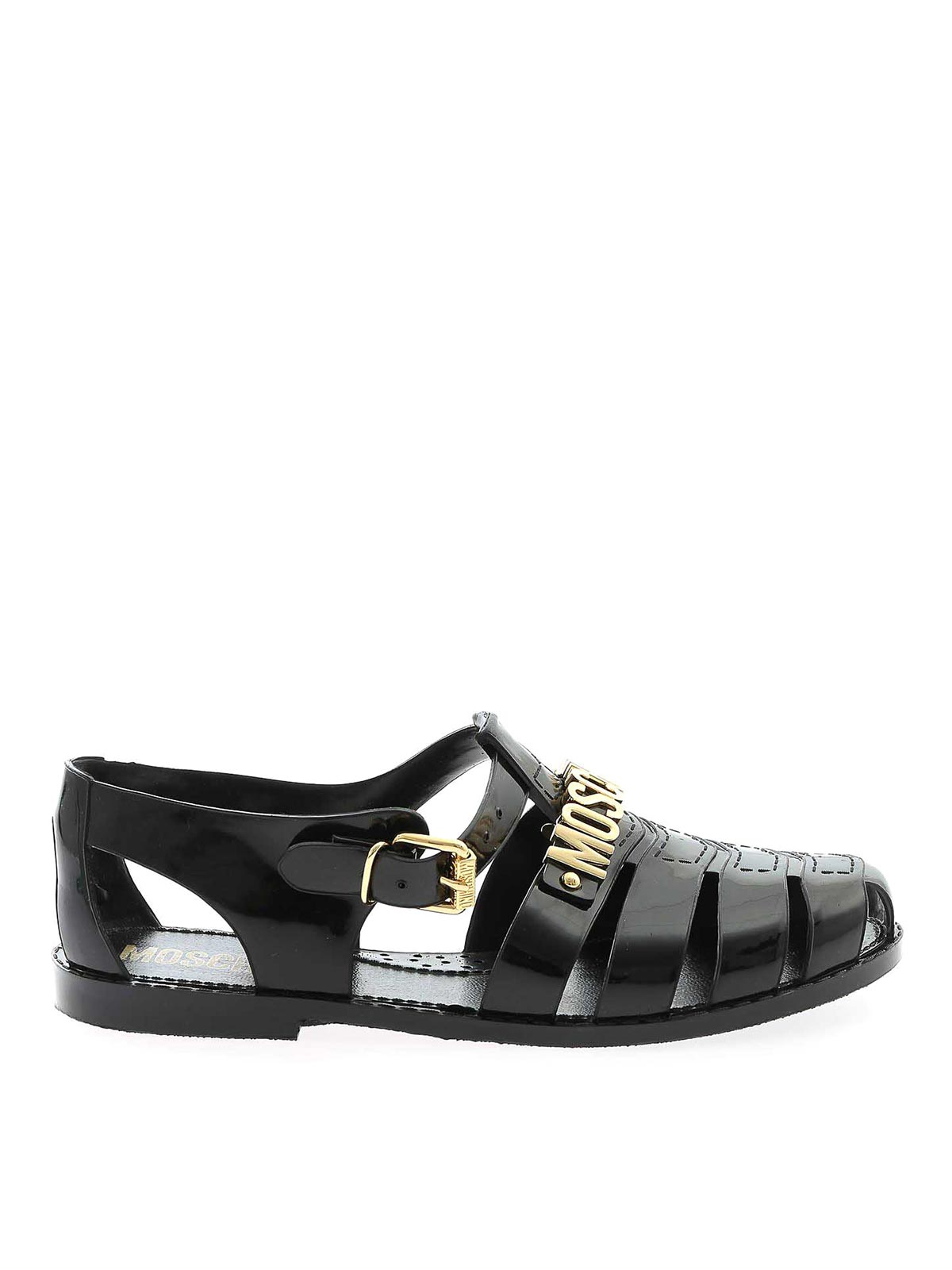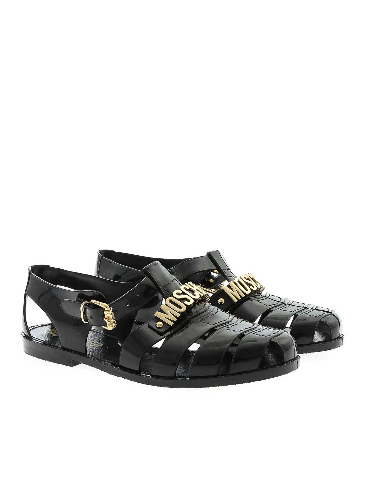 Sandalias de goma negras con logo dorado sandalias de playa con logo frontal ajustable con hebilla lateral