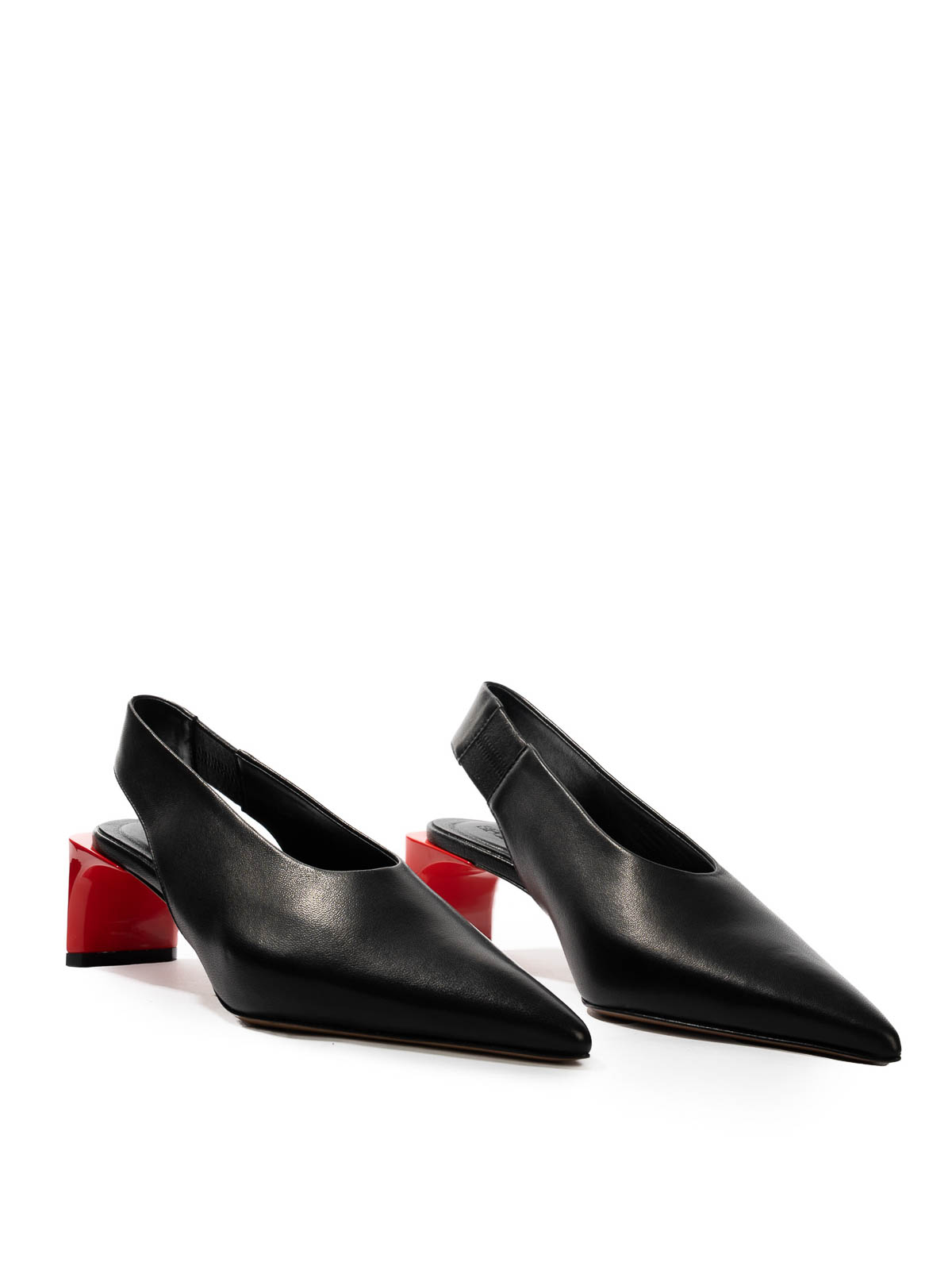 Piel infantil de napa semibrillante con acabado destalonado y punta puntiaguda con antideslizante en forma geométrica