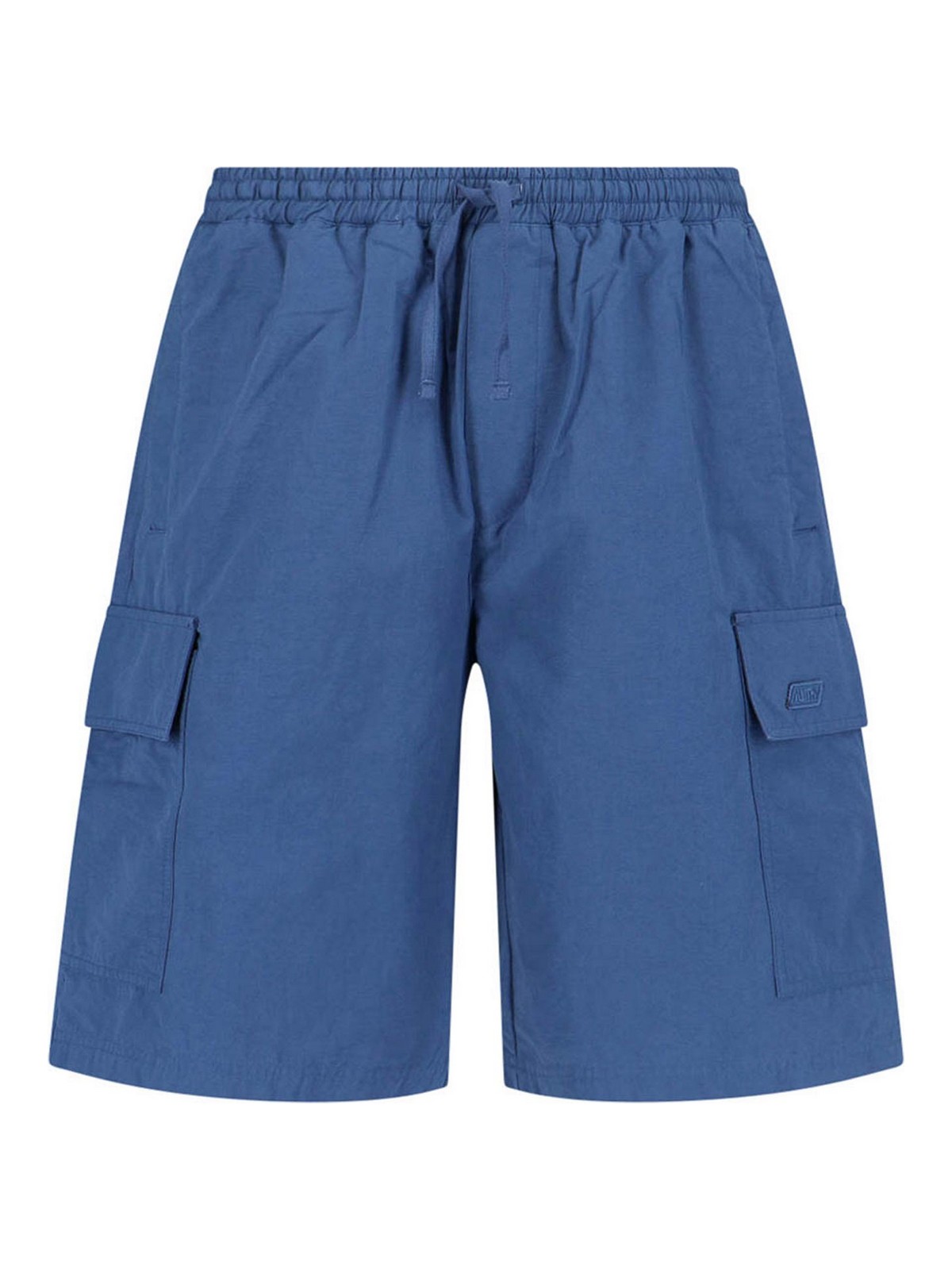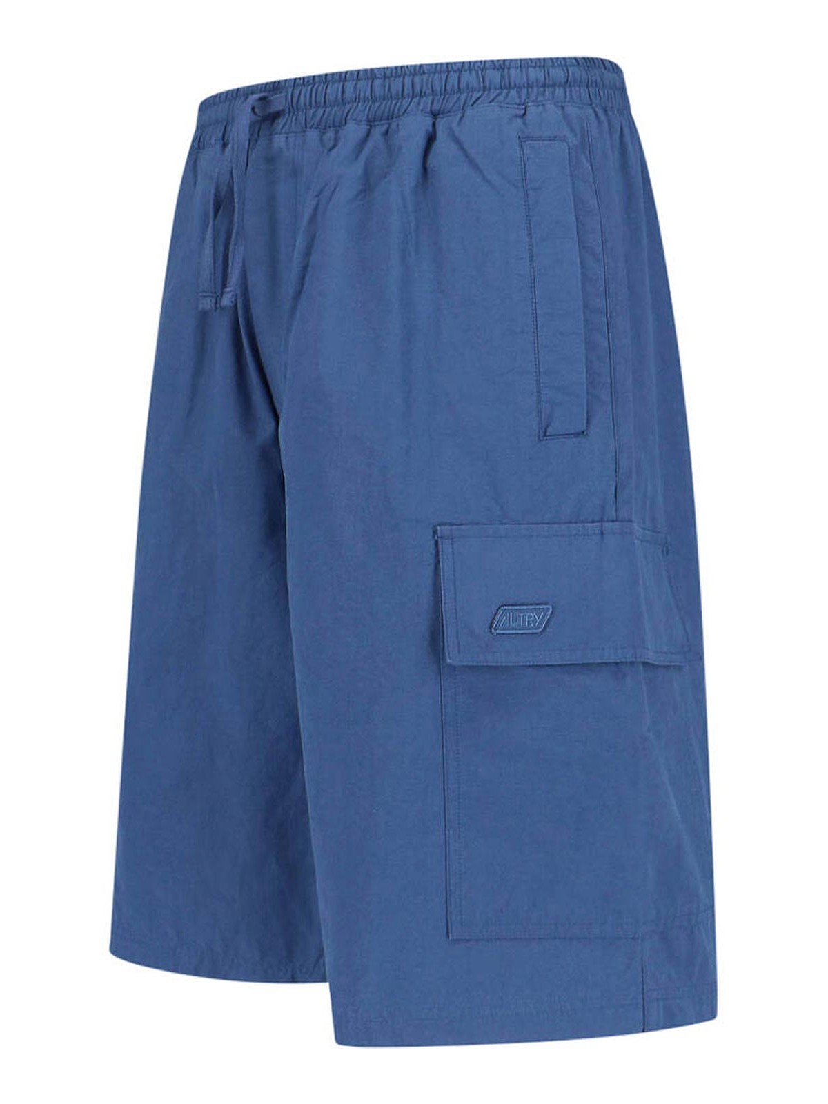 Pantalones cortos deportivos Autry cargo, en mezcla de algodón azul, cintura elástica en la mitad de la cintura, cierre ajustable con cordón, dos bolsillos laterales planos, dos bolsillos cargo laterales, parche con el logotipo tono sobre tono, un bolsillo trasero con botón, pernera recta.