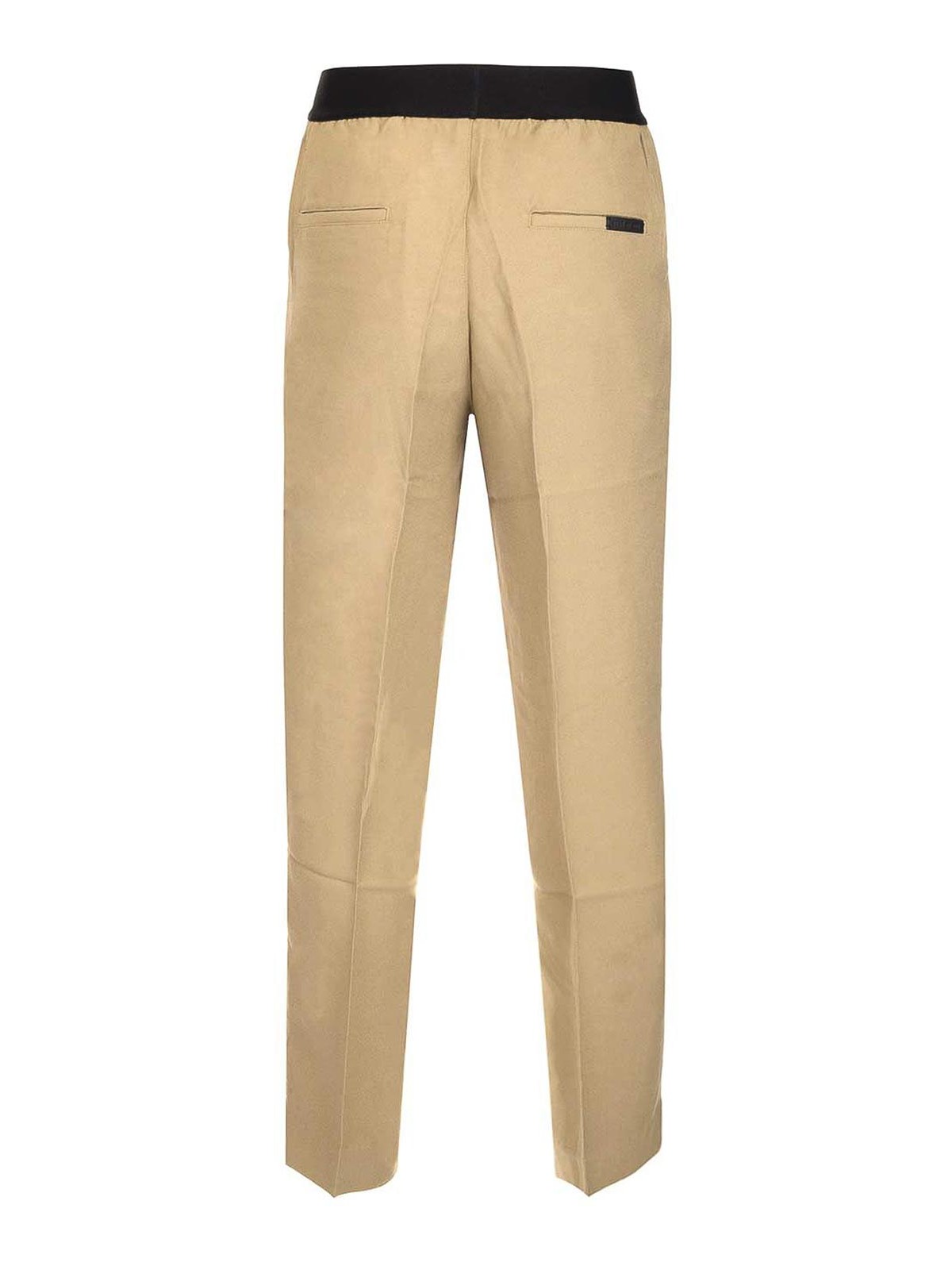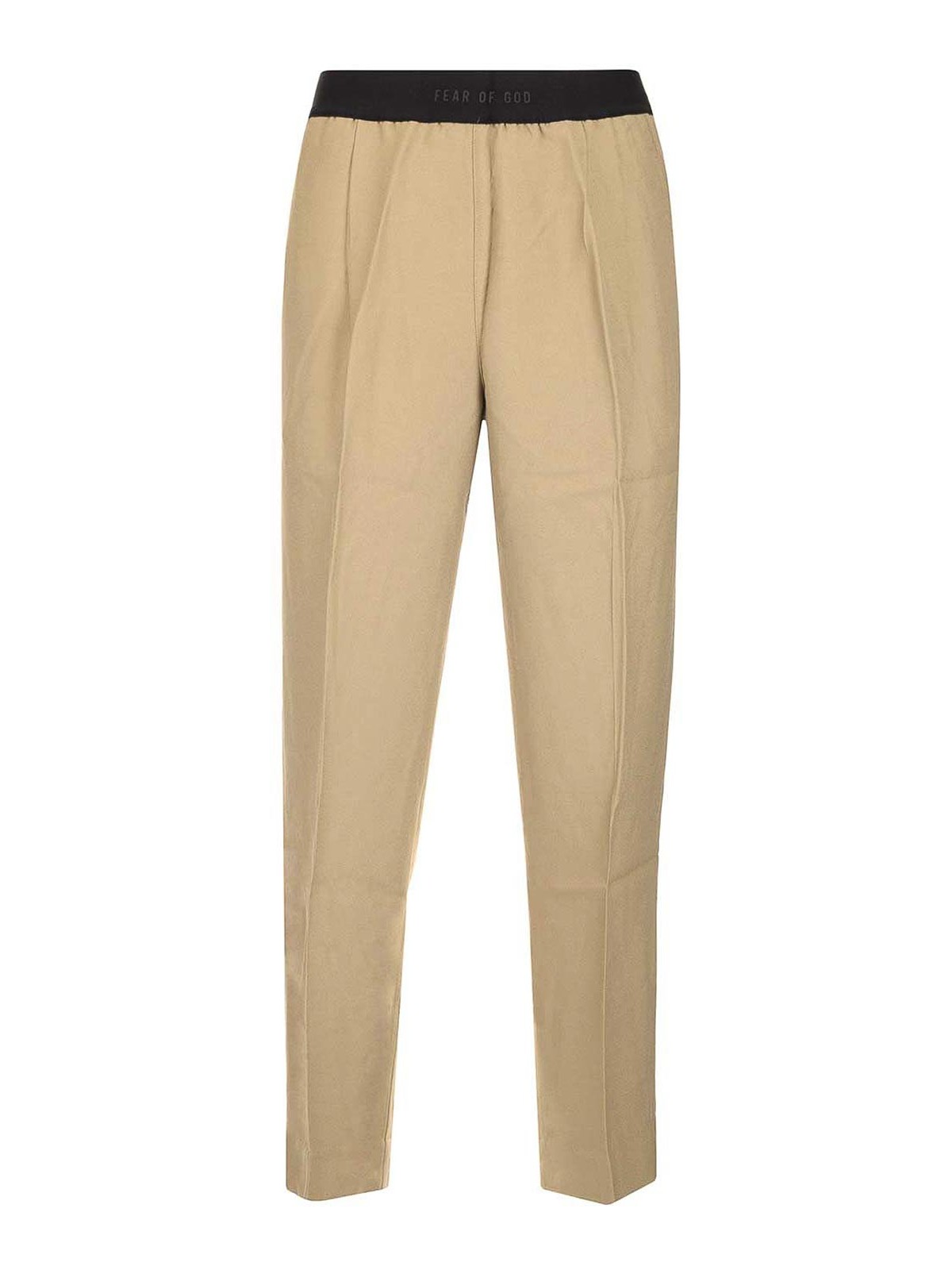 Pantalones de algodón beige con cintura elástica negra con logotipo, dos bolsillos laterales y dos bolsillos traseros ribeteados de Fear of God.