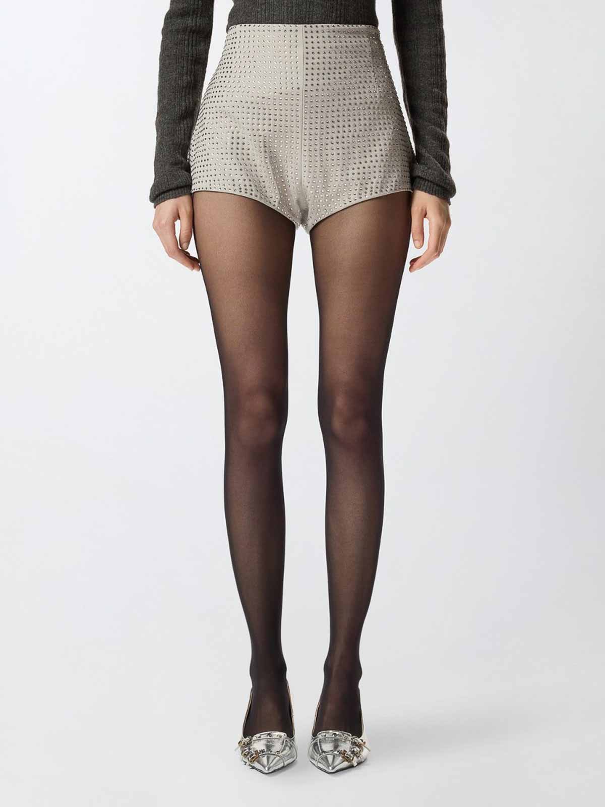Pantalones cortos con ribete de strass de pinko Pantalones cortos de talle alto con corte ajustado, costuras verticales y ribetes de strass que adornan toda la silueta y le dan un toque brillante.