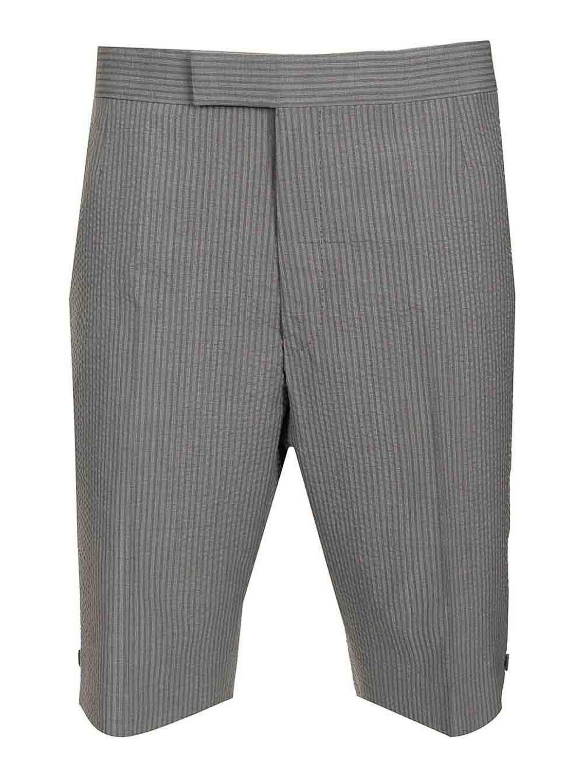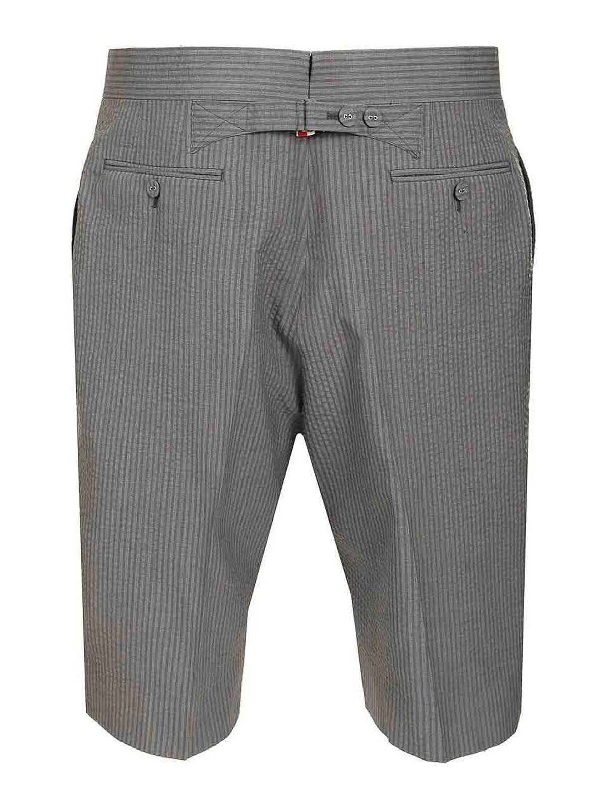 Bermudas Seersucker con lengüeta y bolsillos ribeteados laterales, correa trasera ajustable con botón a rayas y lengüeta en la parte trasera de la cintura