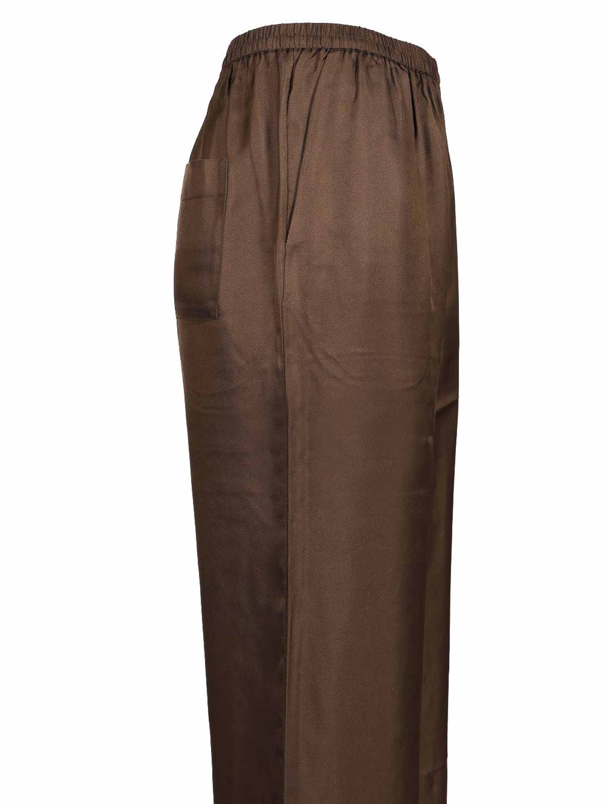 pantalones de seda alera de lou lou studio. Cintura elástica, dos bolsillos laterales y un bolsillo plano en la parte trasera. Corte holgado.