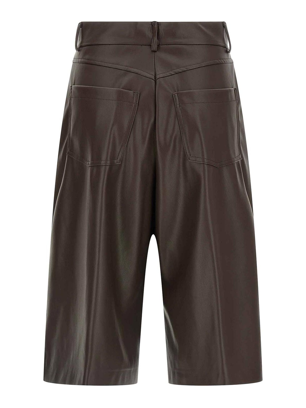 Bermudas de tela con efecto piel, pernera holgada, cierre con cremallera y botones en la parte delantera, cinco bolsillos.