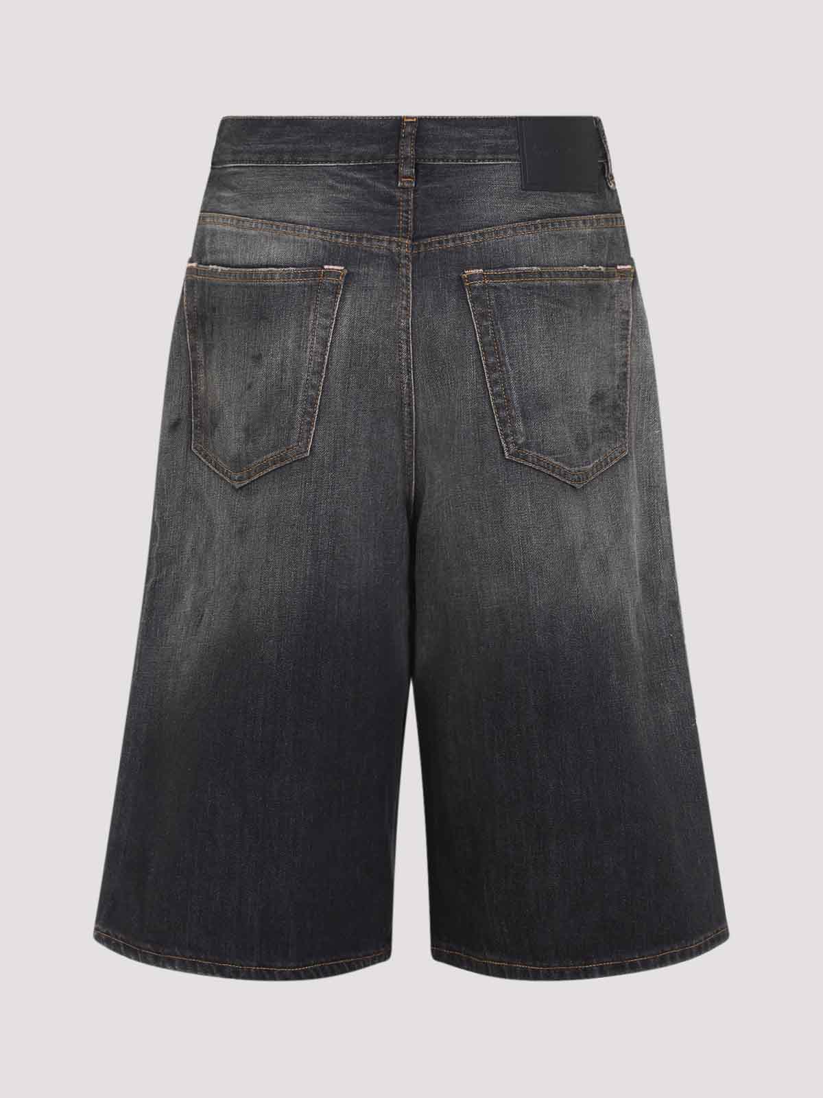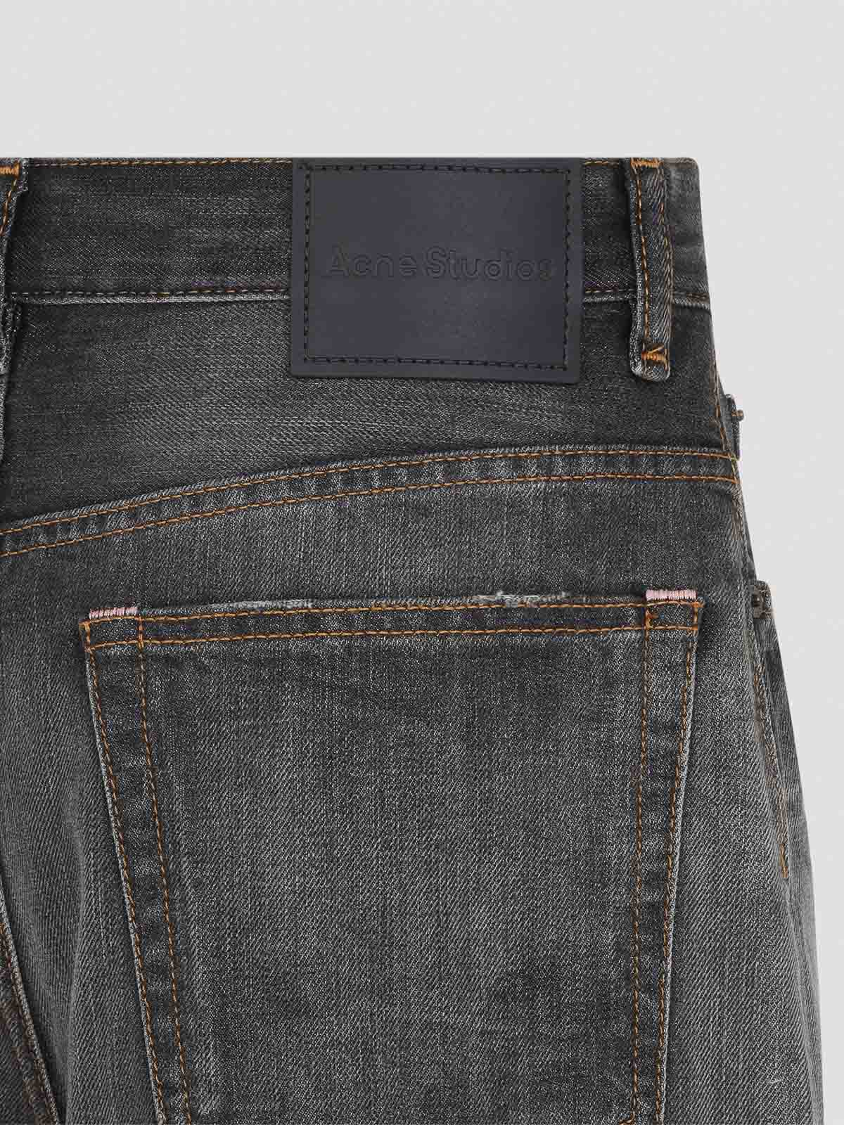 Pantalones cortos negros de algodón de Acne Studios. Pantalones cortos holgados confeccionados en mezclilla de algodón negro decolorado y sucio, con cintura baja, confección de 5 bolsillos, trabillas para el cinturón, cierre con botones en la parte delantera, parche de piel con el logotipo en la parte posterior, pierna recta y longitud por debajo de la rodilla.