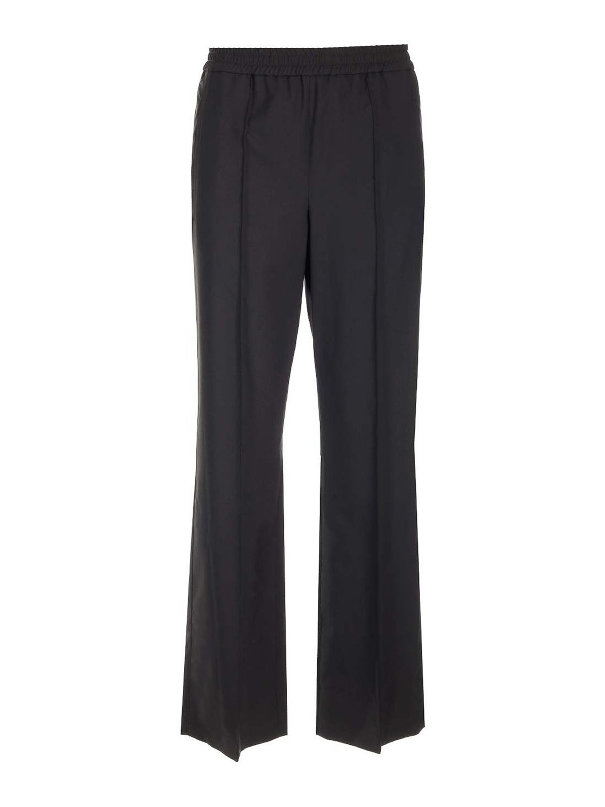 Pantalones negros de gabardina de lana con cintura elástica y pernera recta de Loewe.