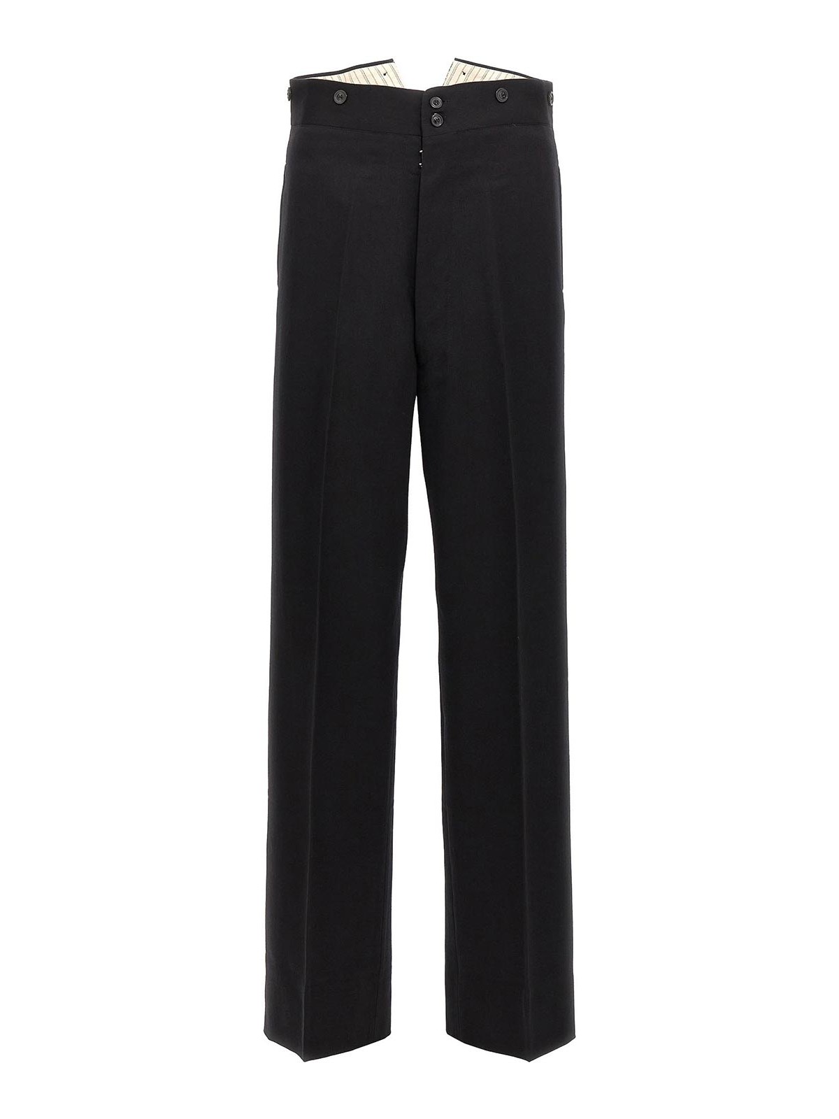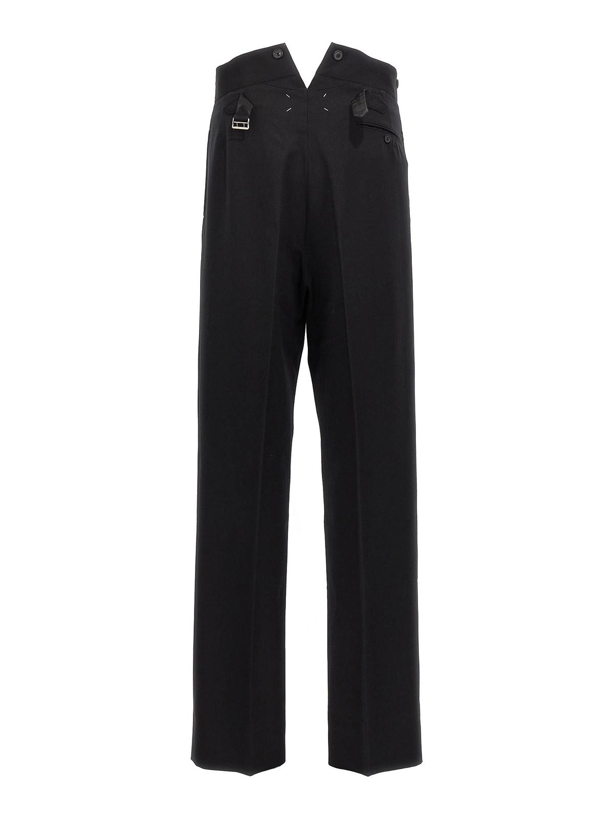Pantalones de lana con correa ajustable en la parte trasera, botones y bolsillos con gancho