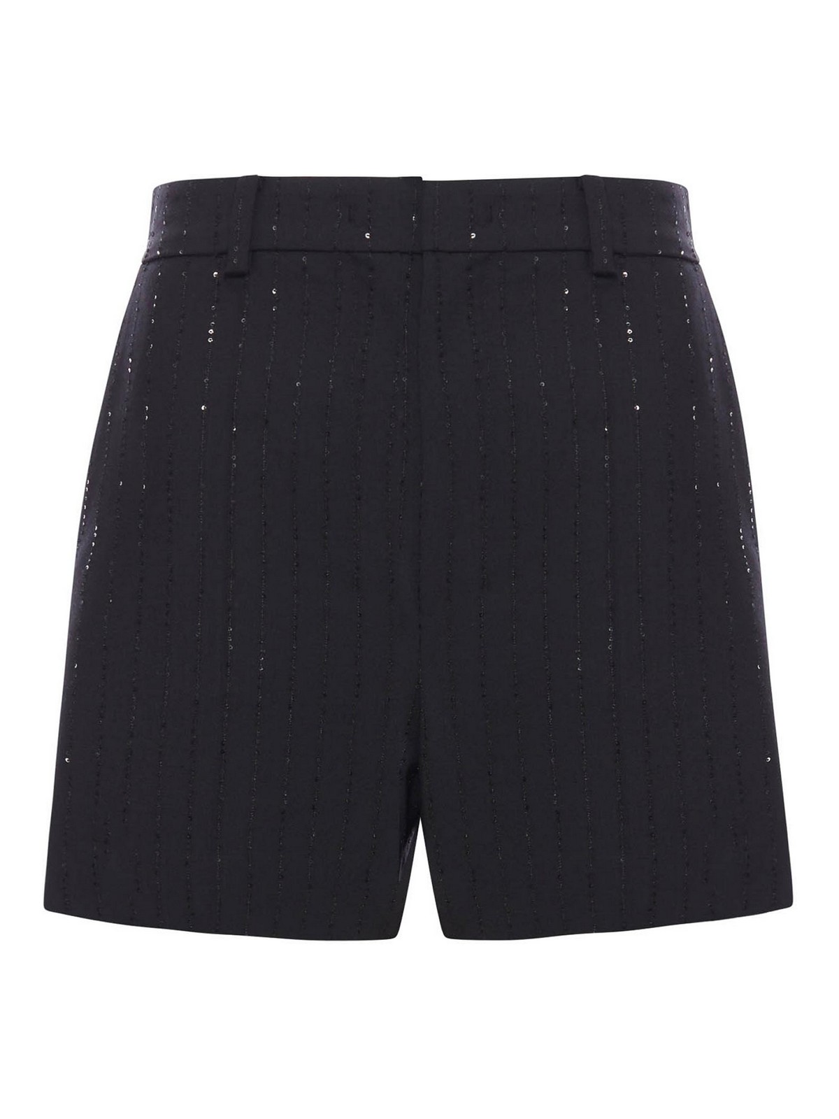 Pantalones cortos inspirados a medida, microlentejuelas bordadas con efecto a rayas, pantalones cortos de sarga pura, corte recto, cintura alta con cremallera y gancho, ojal, bolsillos inclinados en los laterales, bolsillos ribeteados en la parte posterior, trabillas y pliegue prensado, color negro