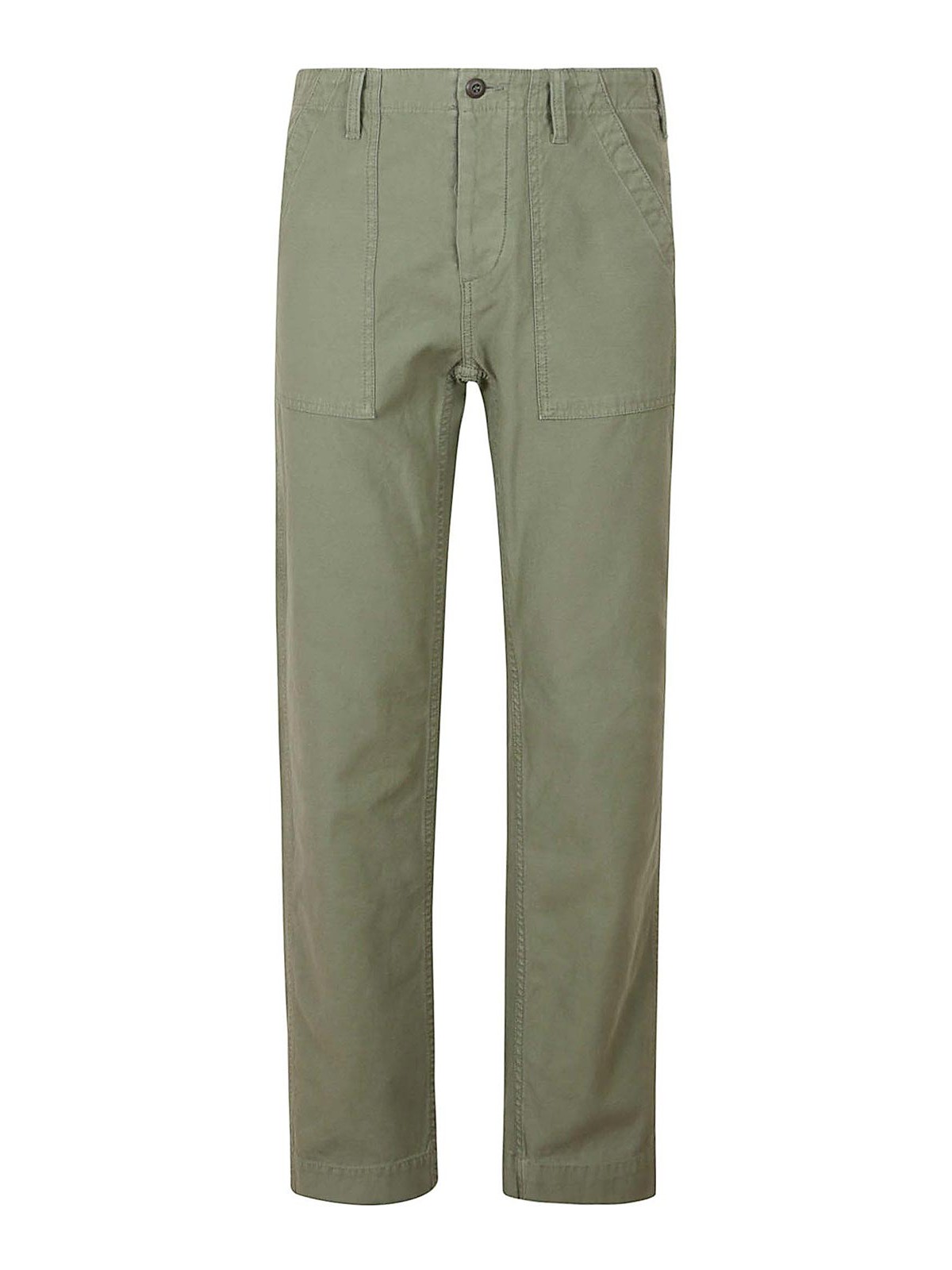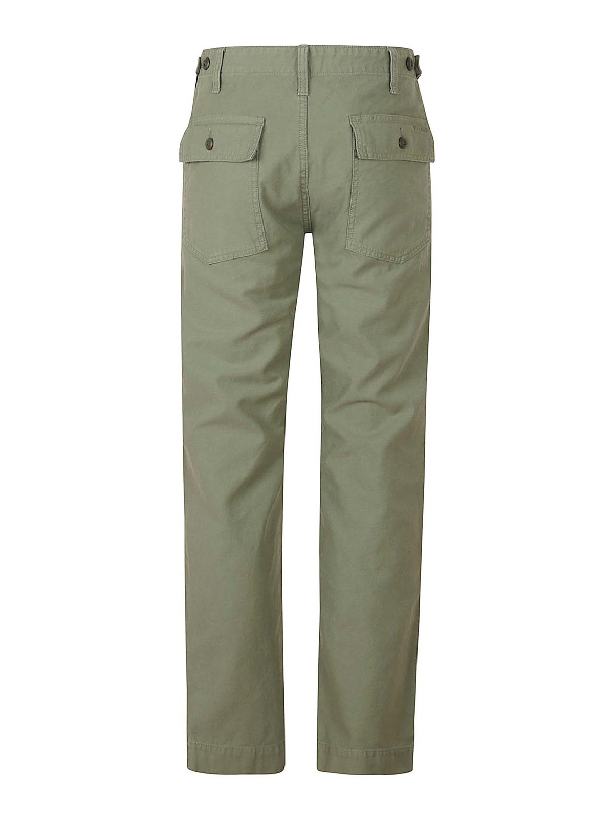 Gatillo de algodón con botones que pasan a los bolsillos del cinturón, bolsillos frontales aplicados con solapa y botón trasero en la parte inferior