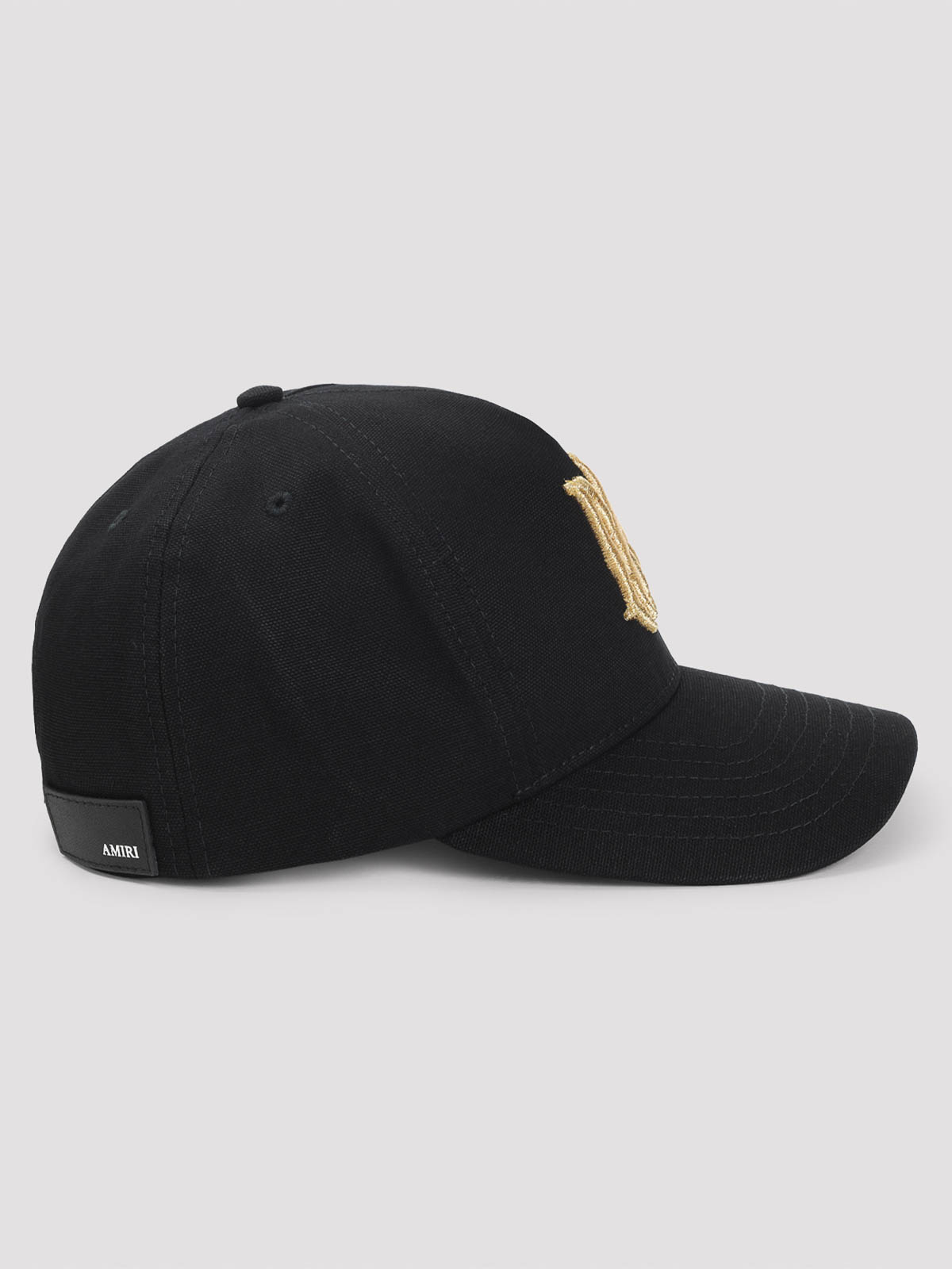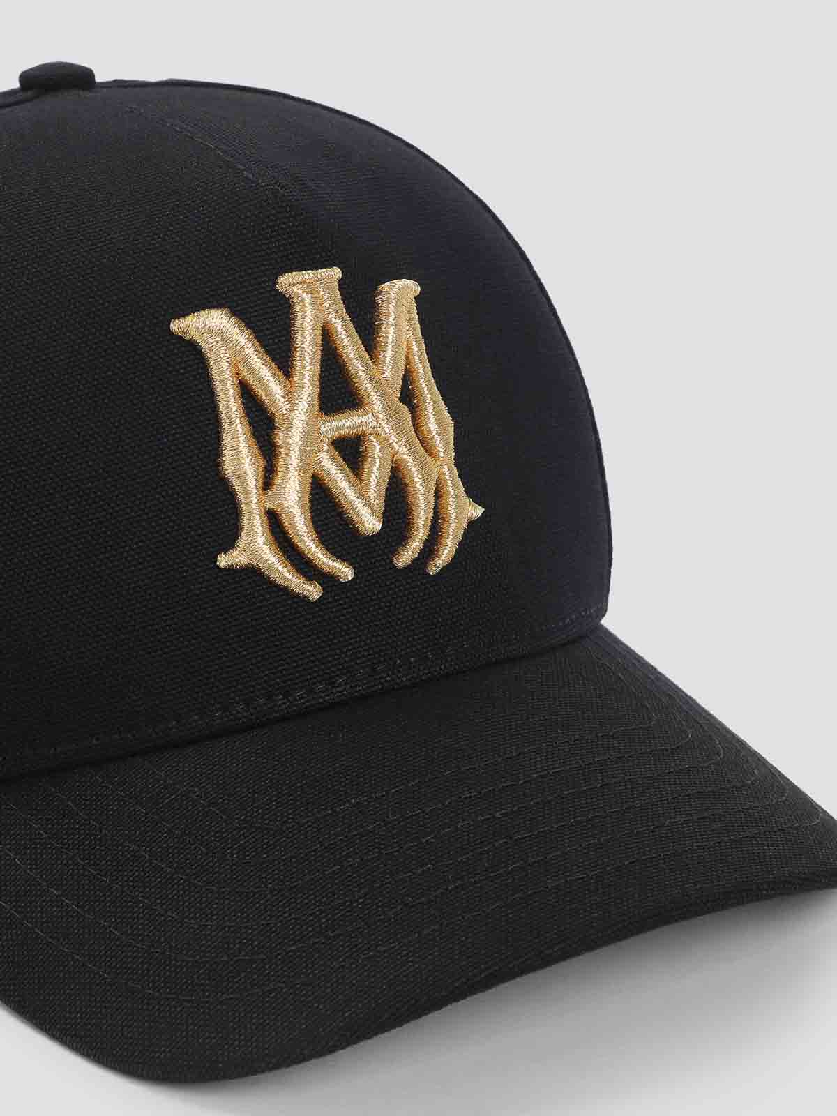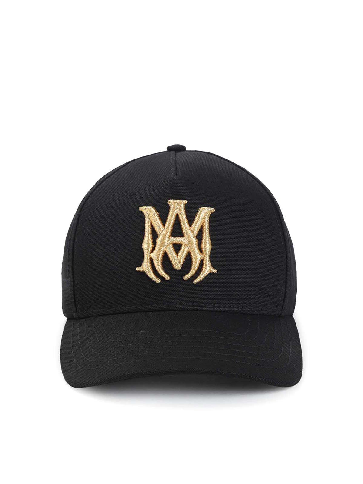 Gorra negra Amiri Trucker confeccionada con un diseño de gorra de béisbol negra con logotipo beige en contraste en la visera clásica y correa ajustable en la parte posterior