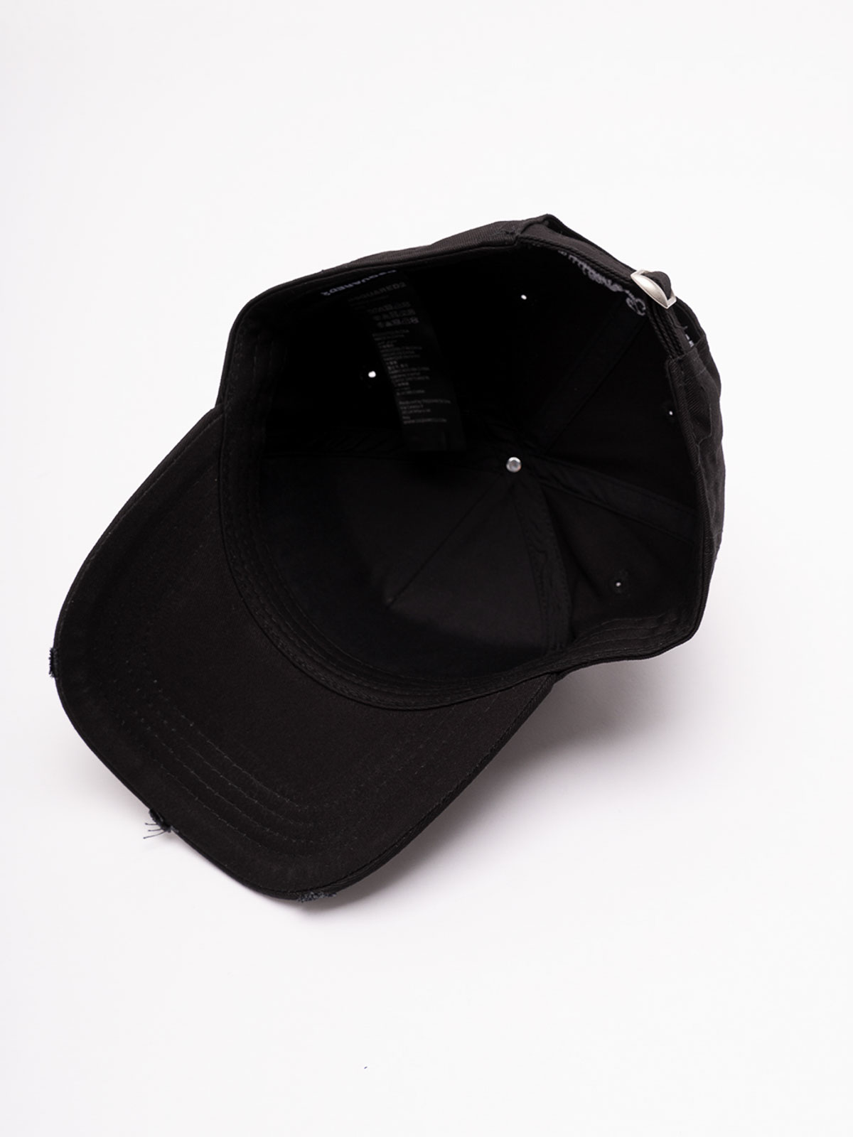 Gorra de béisbol con visera curva, adornada con bordados en la parte delantera y detalles del logotipo. El ajuste trasero permite un ajuste personalizable.