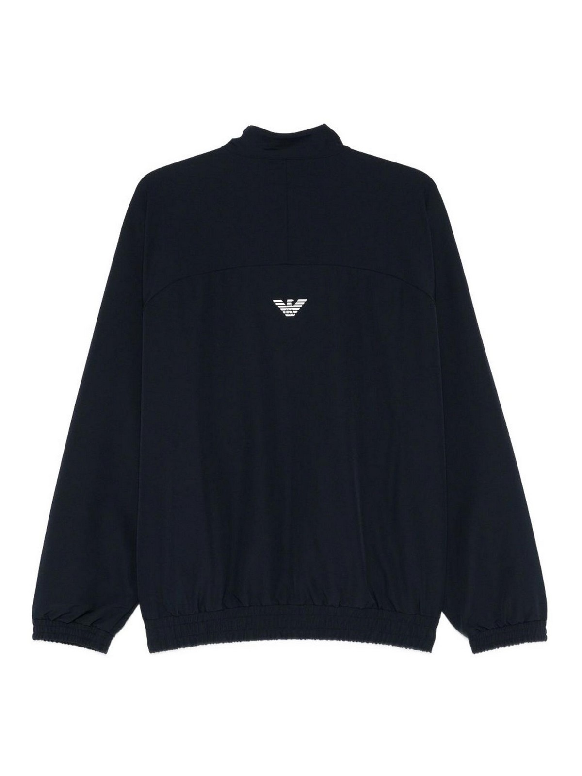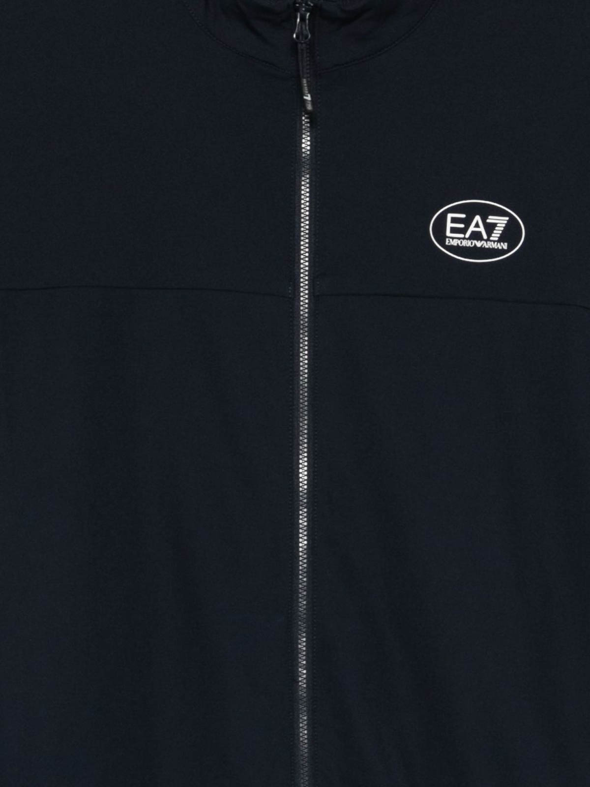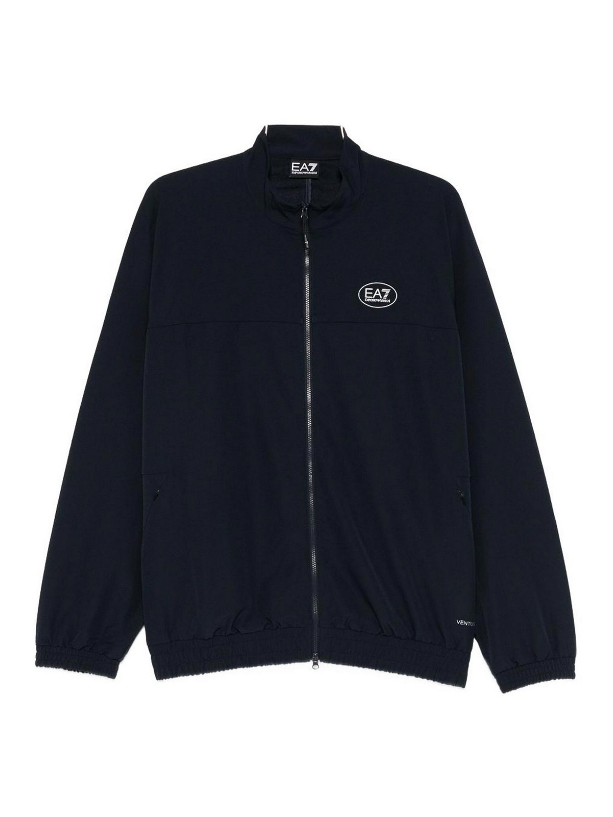 Cierre con cremallera con detalle de logotipo azul, mangas largas, dobladillo elástico, puños elásticos