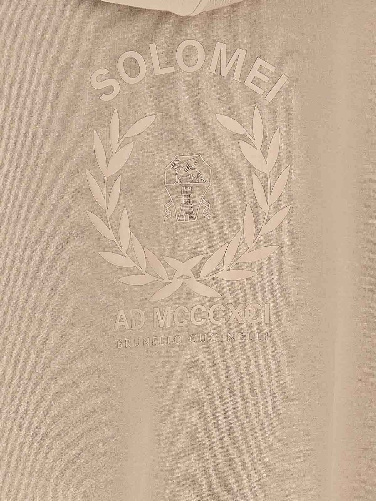 Sudadera ligera de algodón elástico con estampado «solomei ad mcccxci» tono sobre tono en la parte trasera, cierre con cremallera en la parte delantera, bolsillos y mangas largas con puños y hombros caídos.
